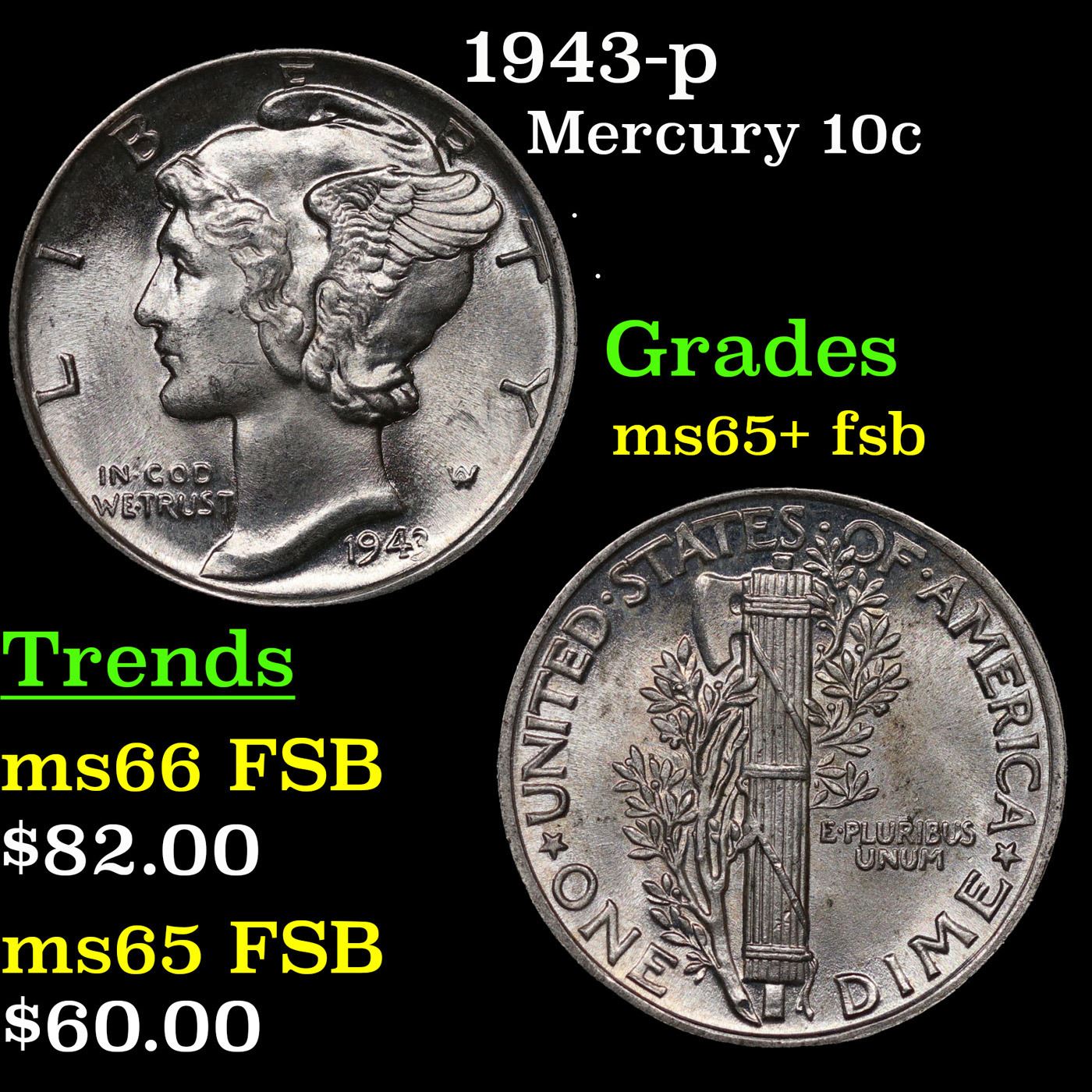1943-p Mercury Dime 10c Grades GEM+ FSB.