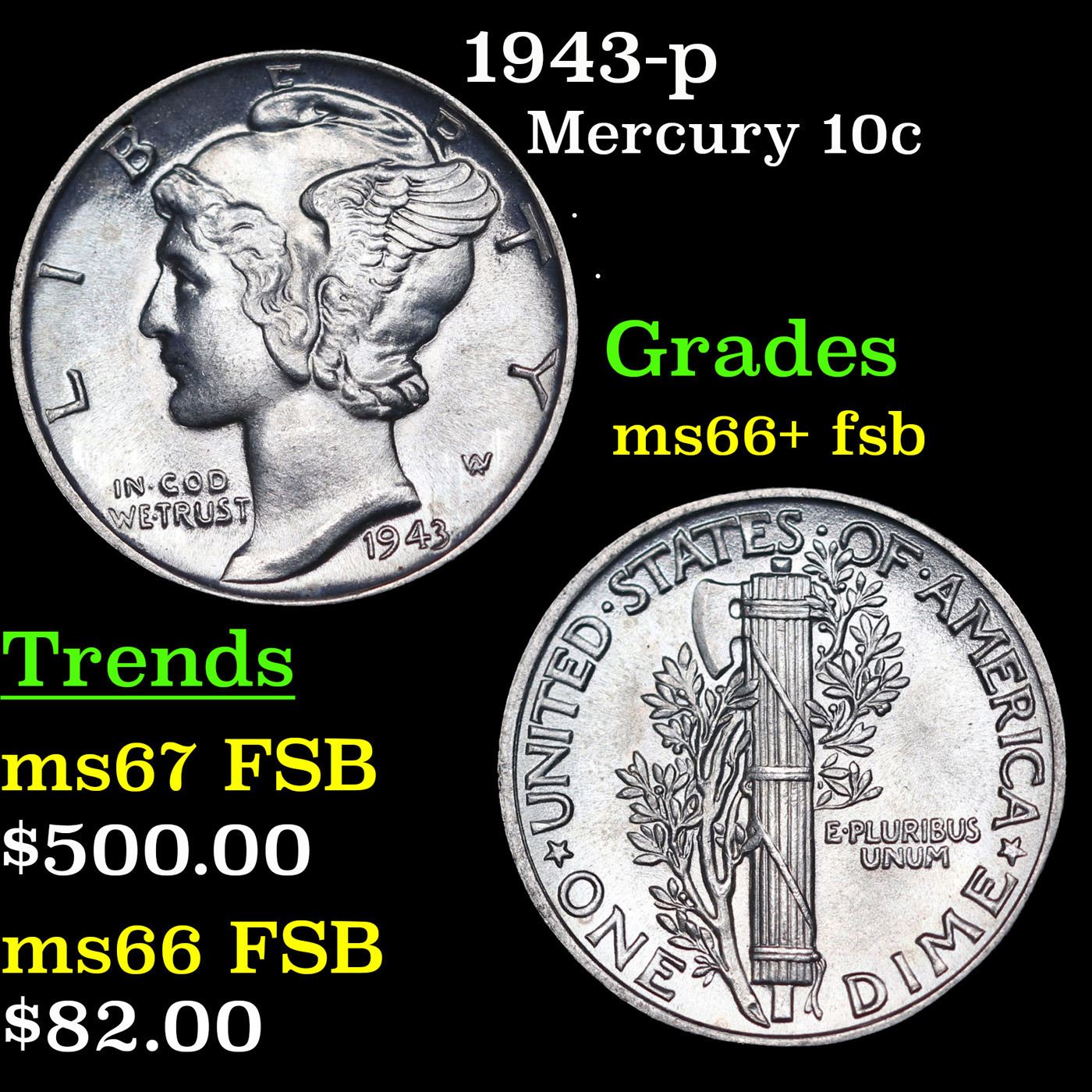 1943-p Mercury Dime 10c Grades GEM++ FSB.