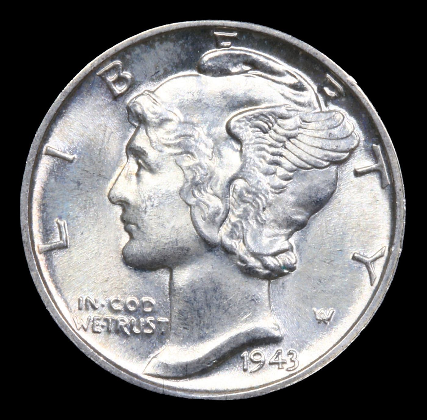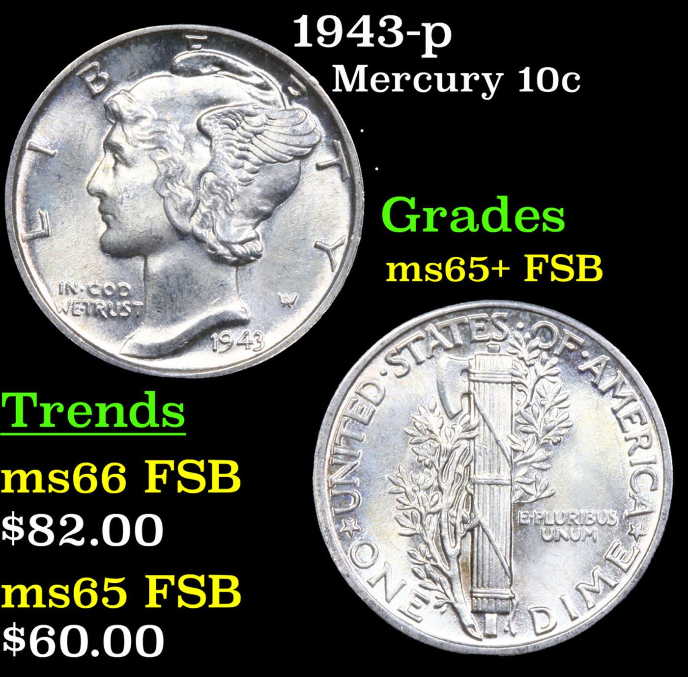 1943-p Mercury Dime 10c Grades GEM+ FSB.