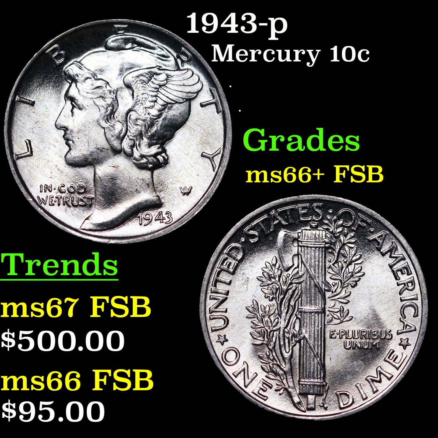 1943-p Mercury Dime 10c Grades GEM++ FSB.