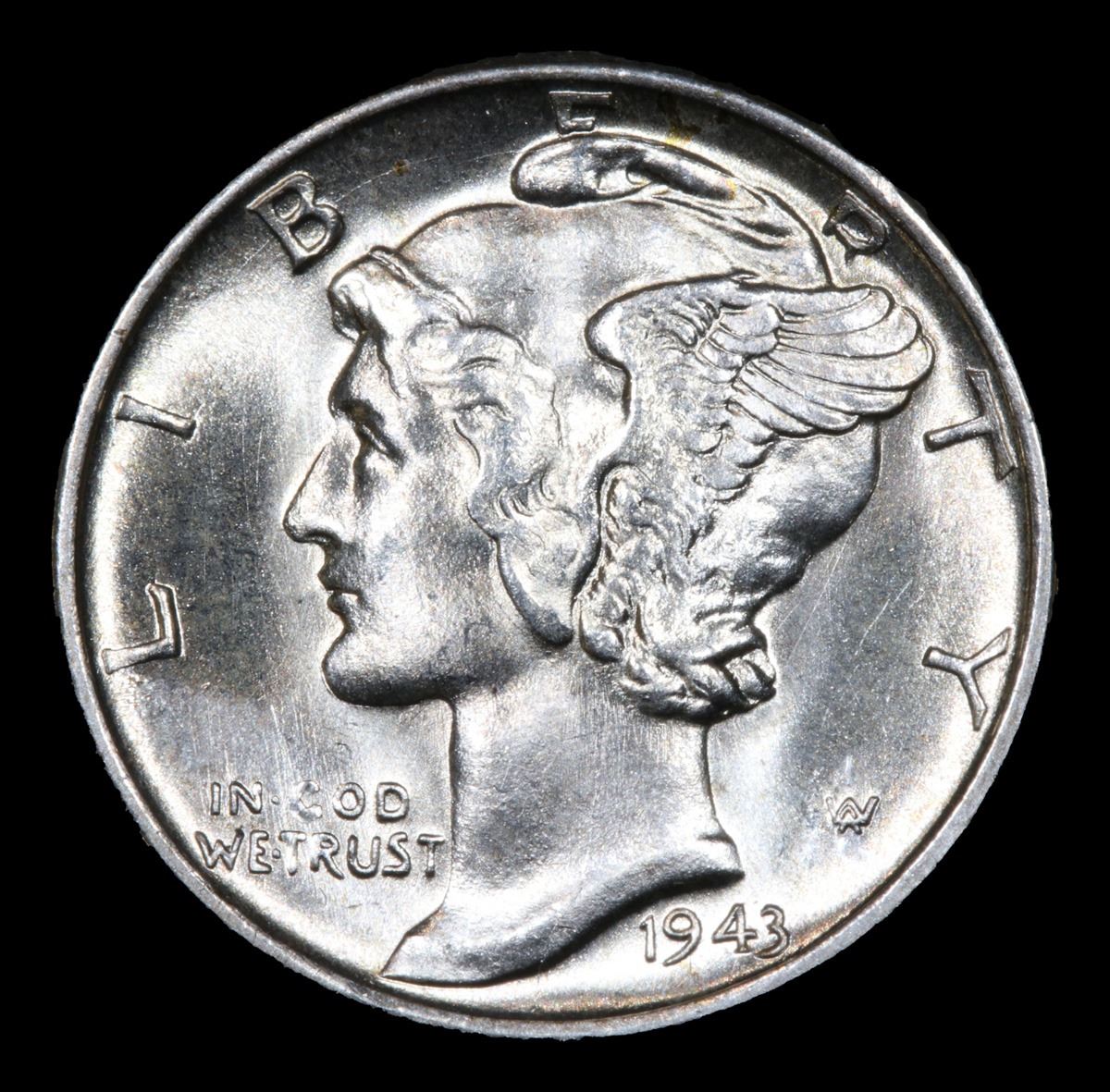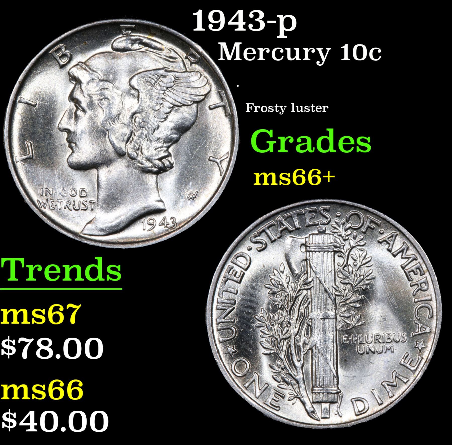 1943-p . Frosty luster Mercury Dime 10c Grades GEM++ Unc.