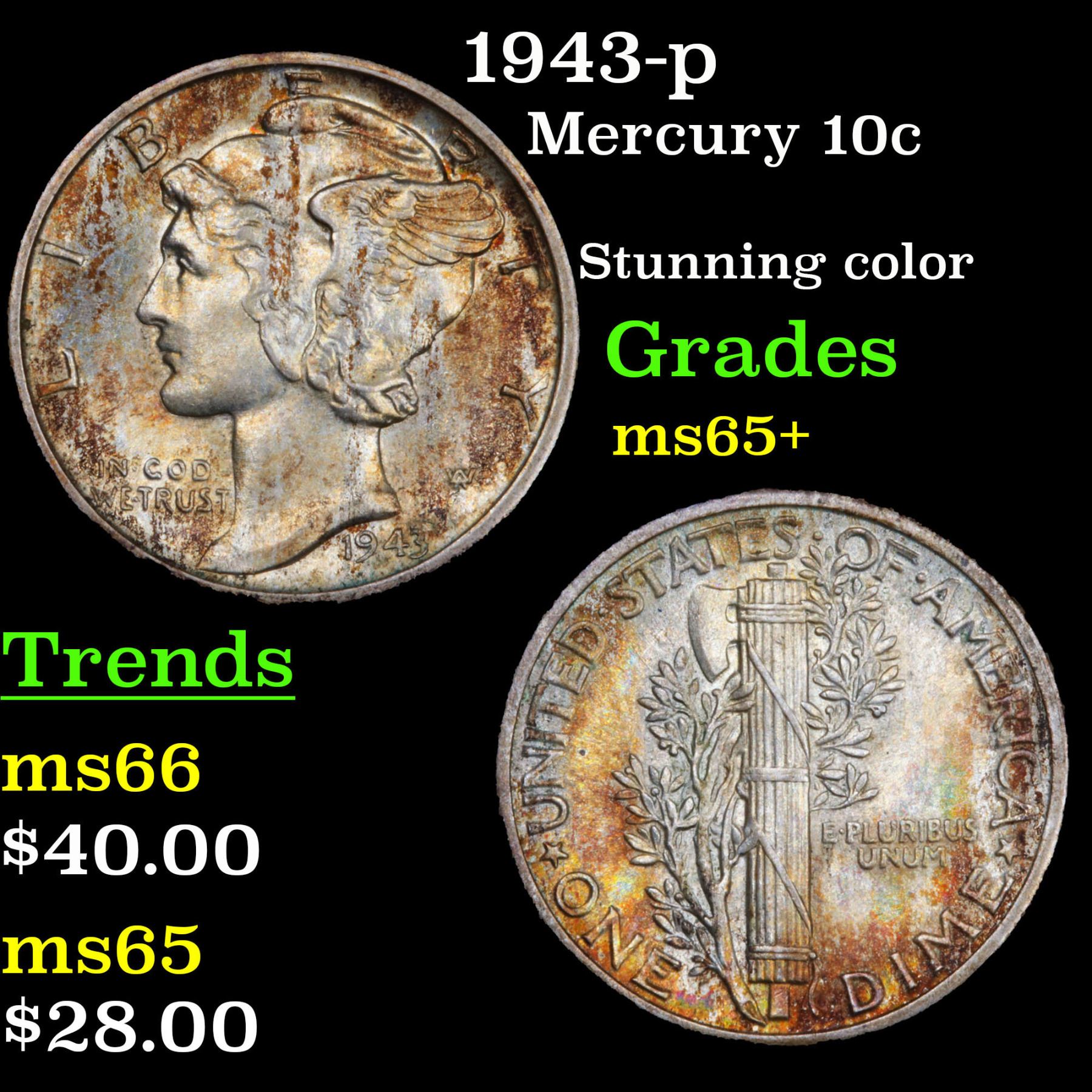 1943-p Mercury Dime 10c Grades GEM+ Unc.