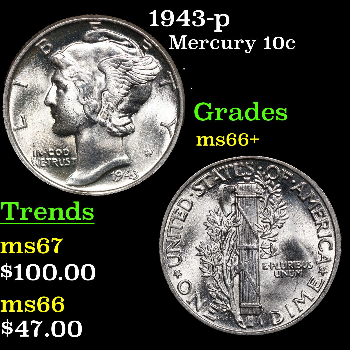 1943-p Mercury Dime 10c Grades GEM++ Unc.