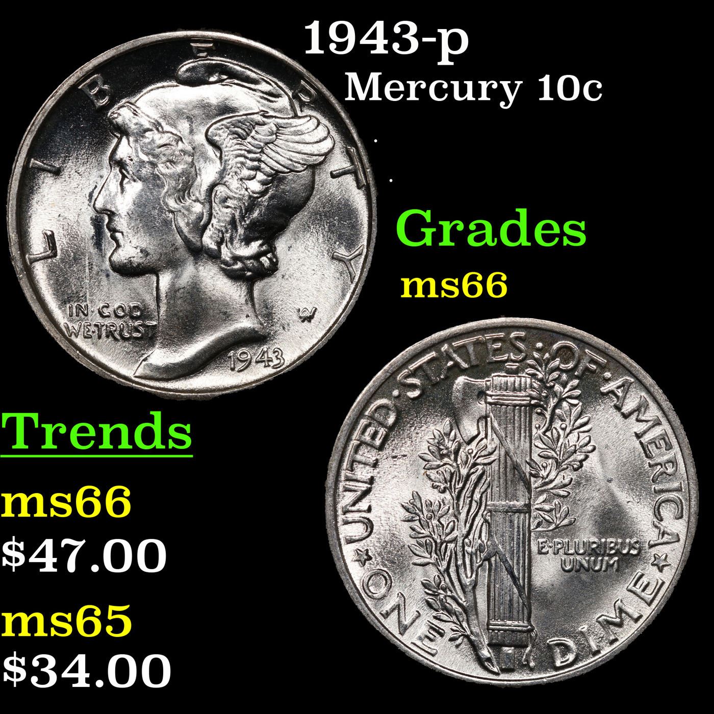 1943-p Mercury Dime 10c Grades GEM+ Unc.