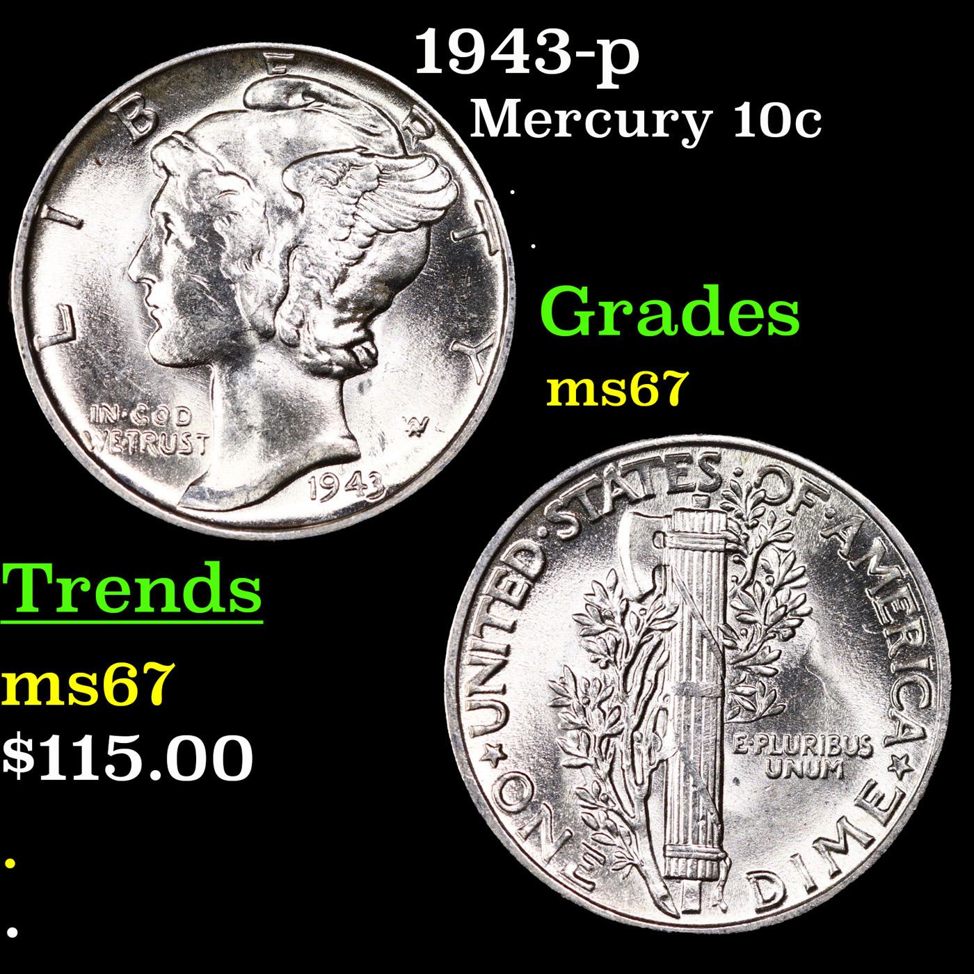 1943-p Mercury Dime 10c Grades GEM++ Unc.