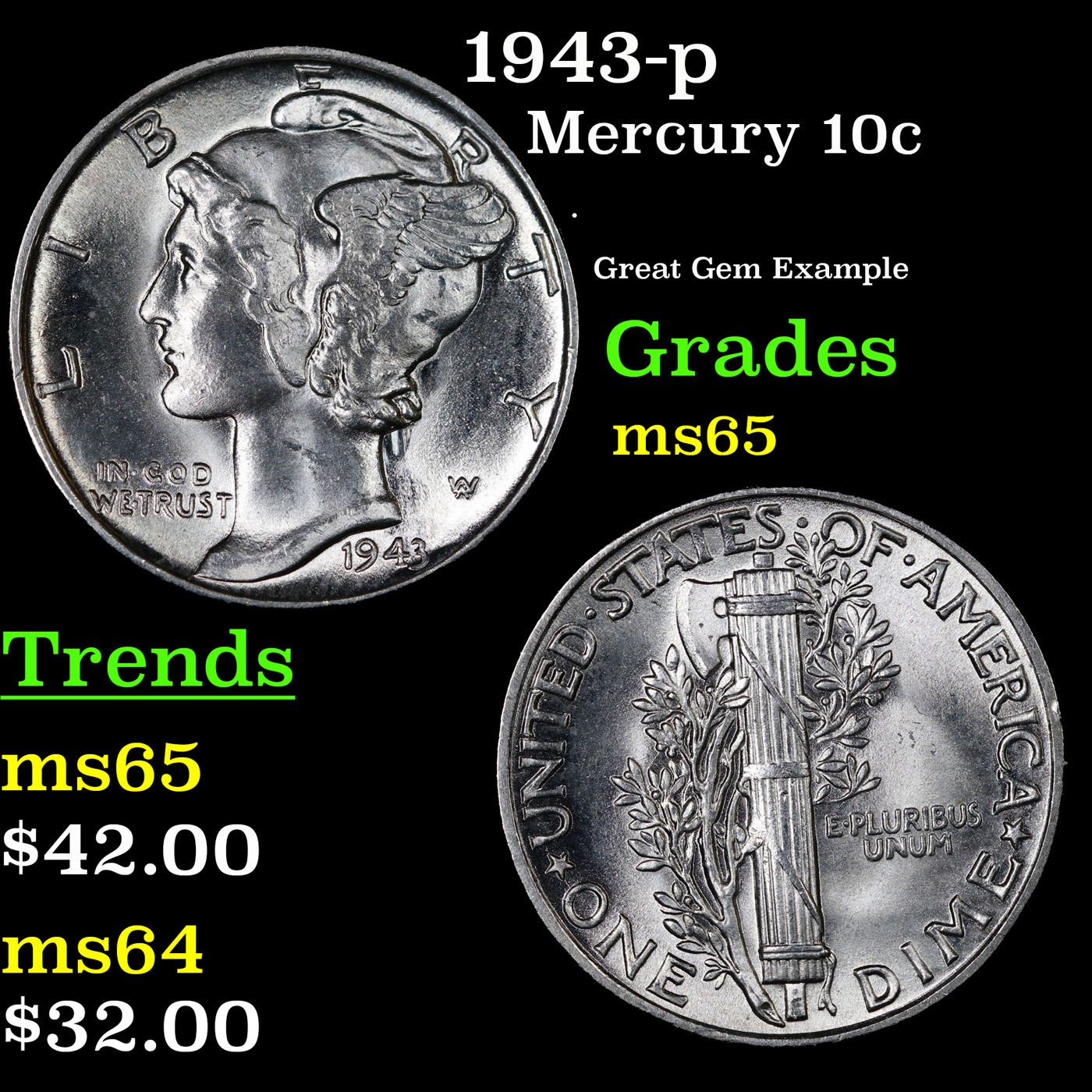1943-p Mercury Dime 10c Grades GEM Unc.