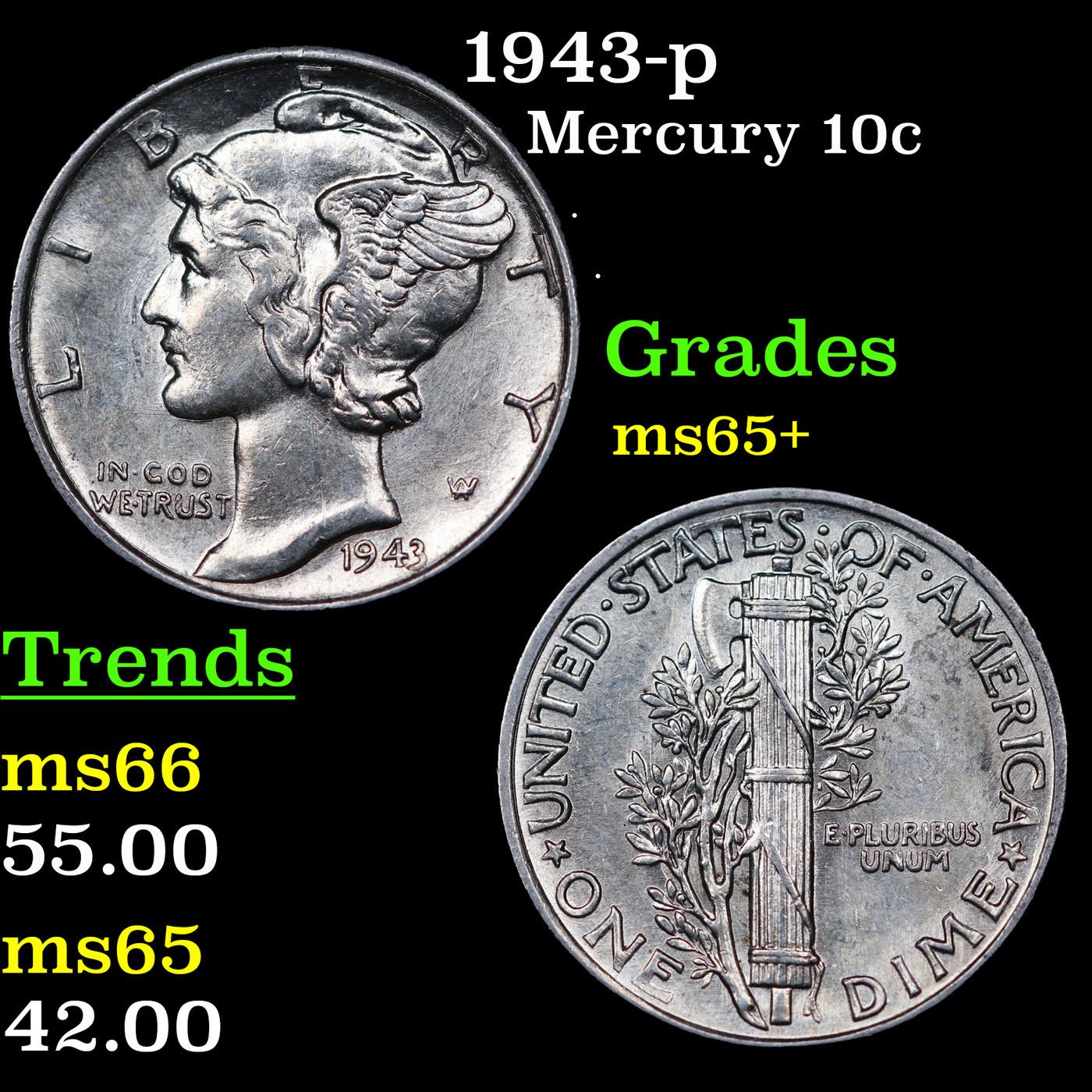 1943-p Mercury Dime 10c Grades GEM+ Unc.
