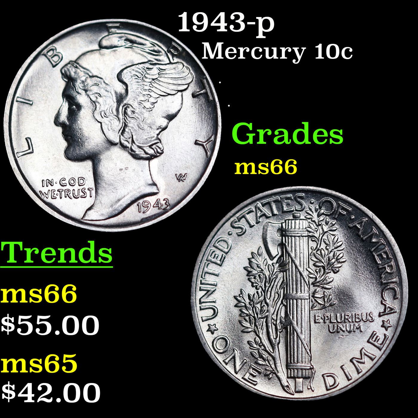 1943-p Mercury Dime 10c Grades GEM+ Unc.