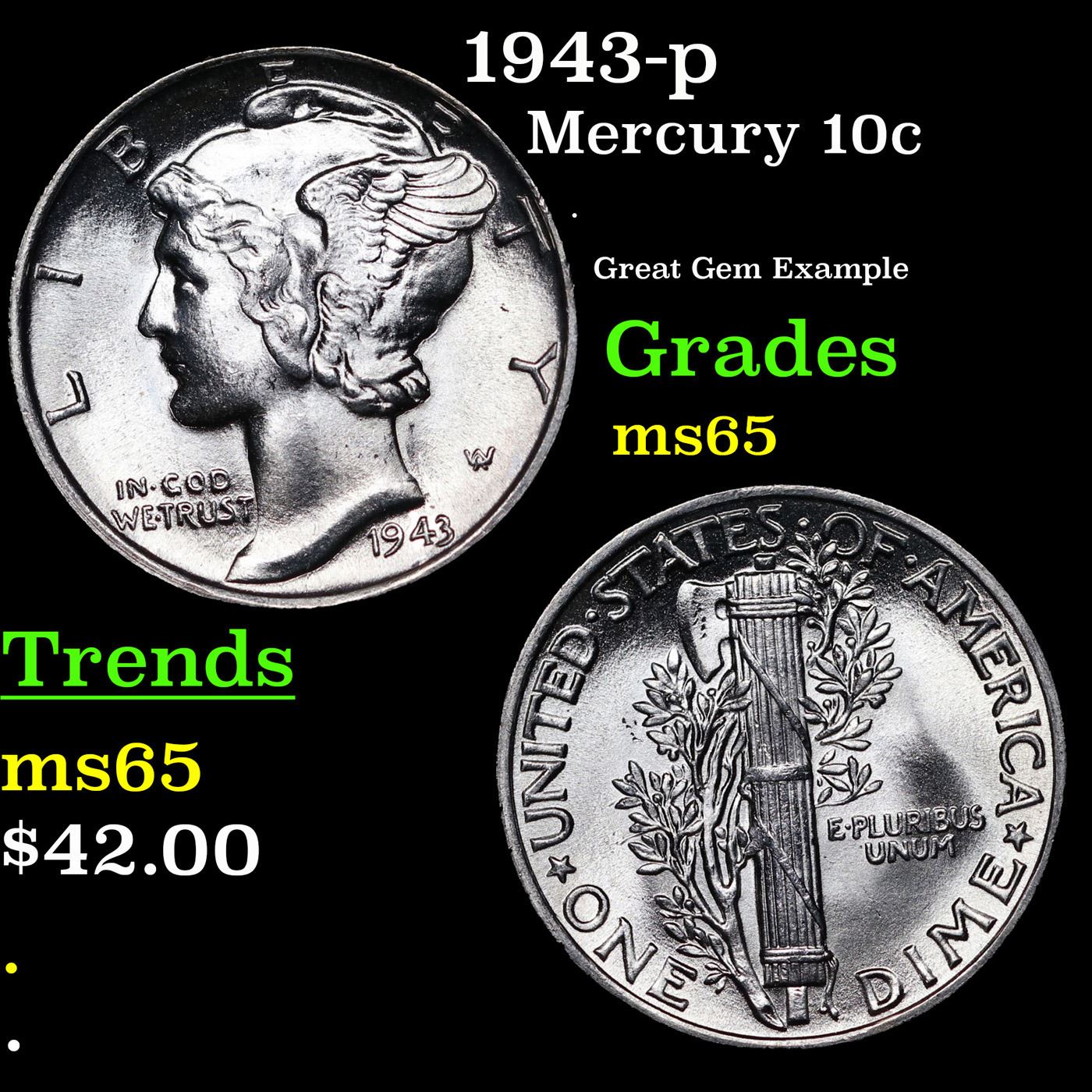 1943-p Mercury Dime 10c Grades GEM Unc.