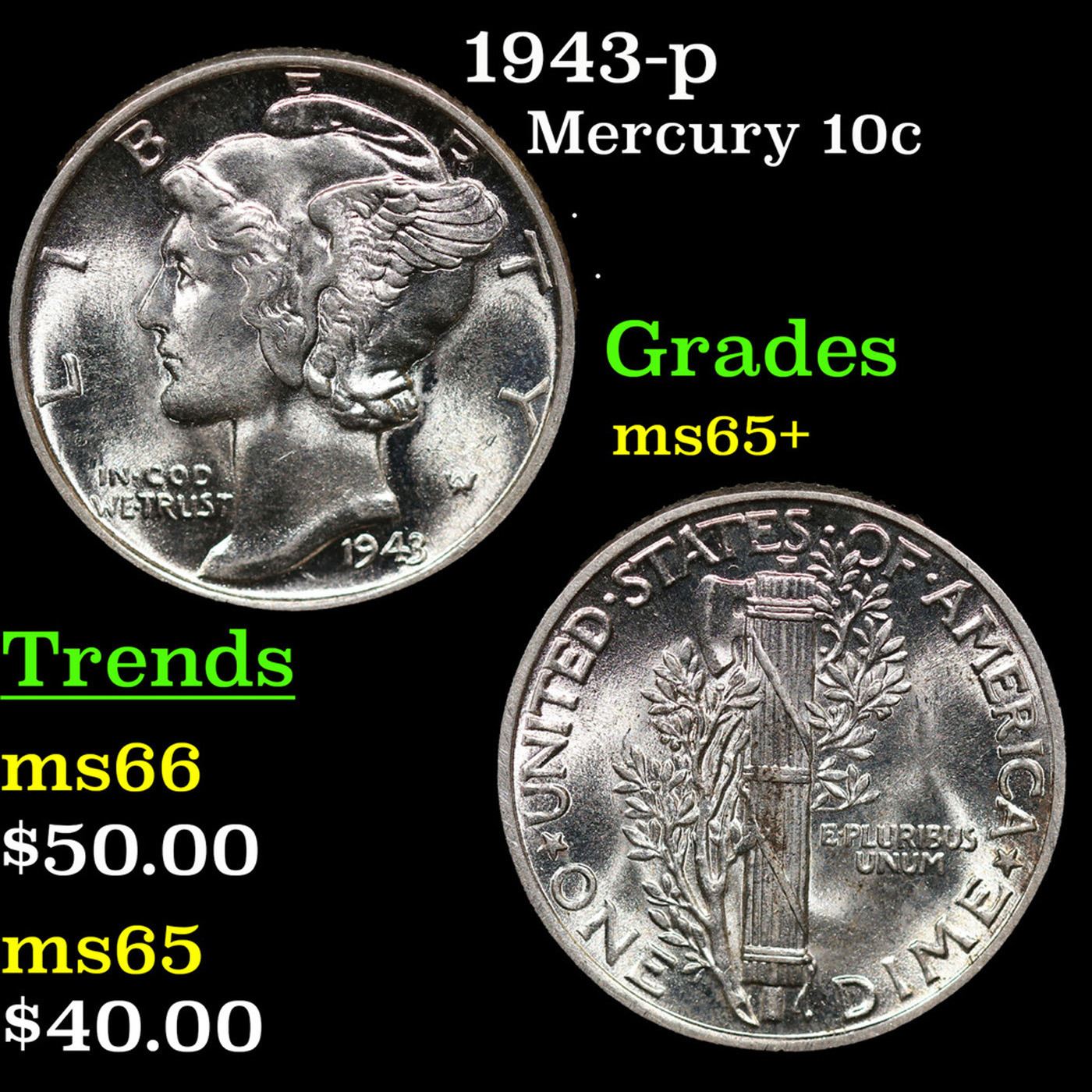 1943-p Mercury Dime 10c Grades GEM+ Unc.