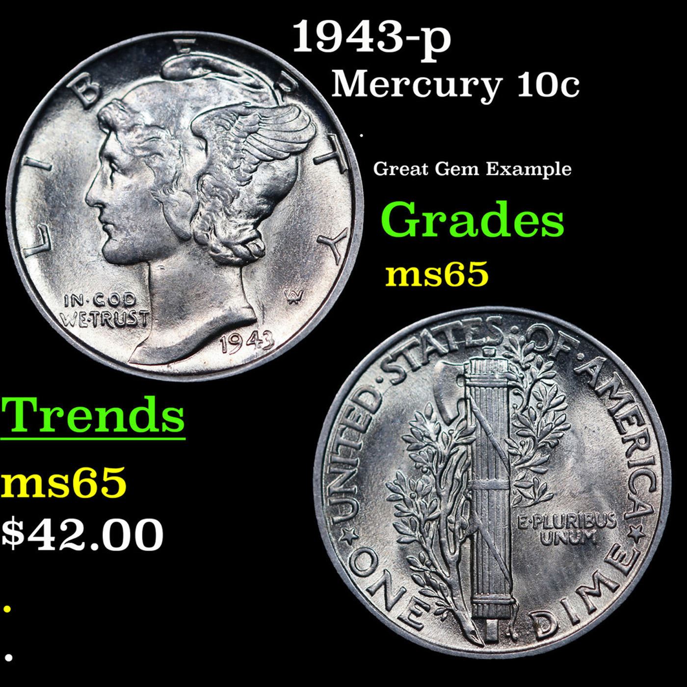 1943-p Mercury Dime 10c Grades GEM Unc.