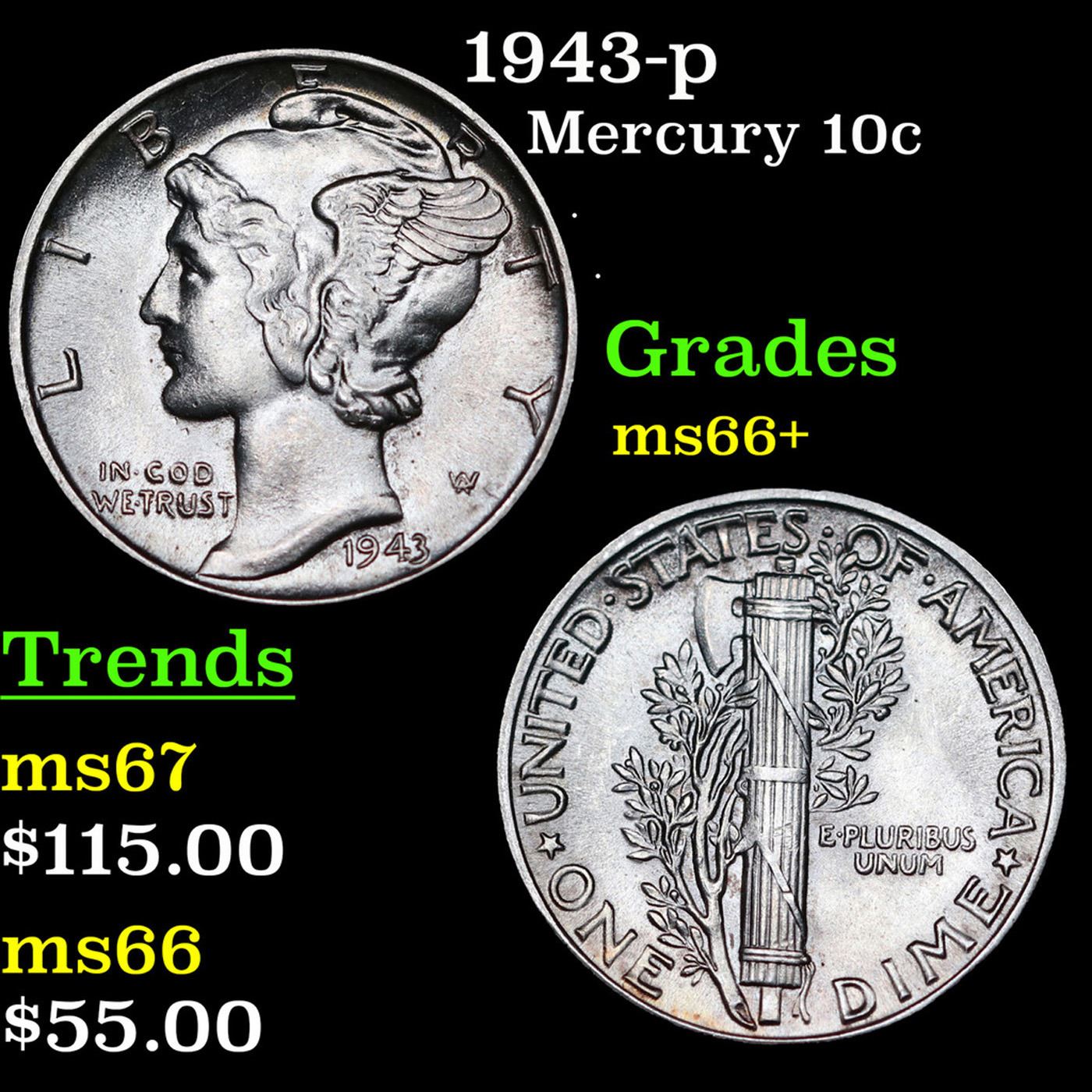 1943-p Mercury Dime 10c Grades GEM++ Unc.