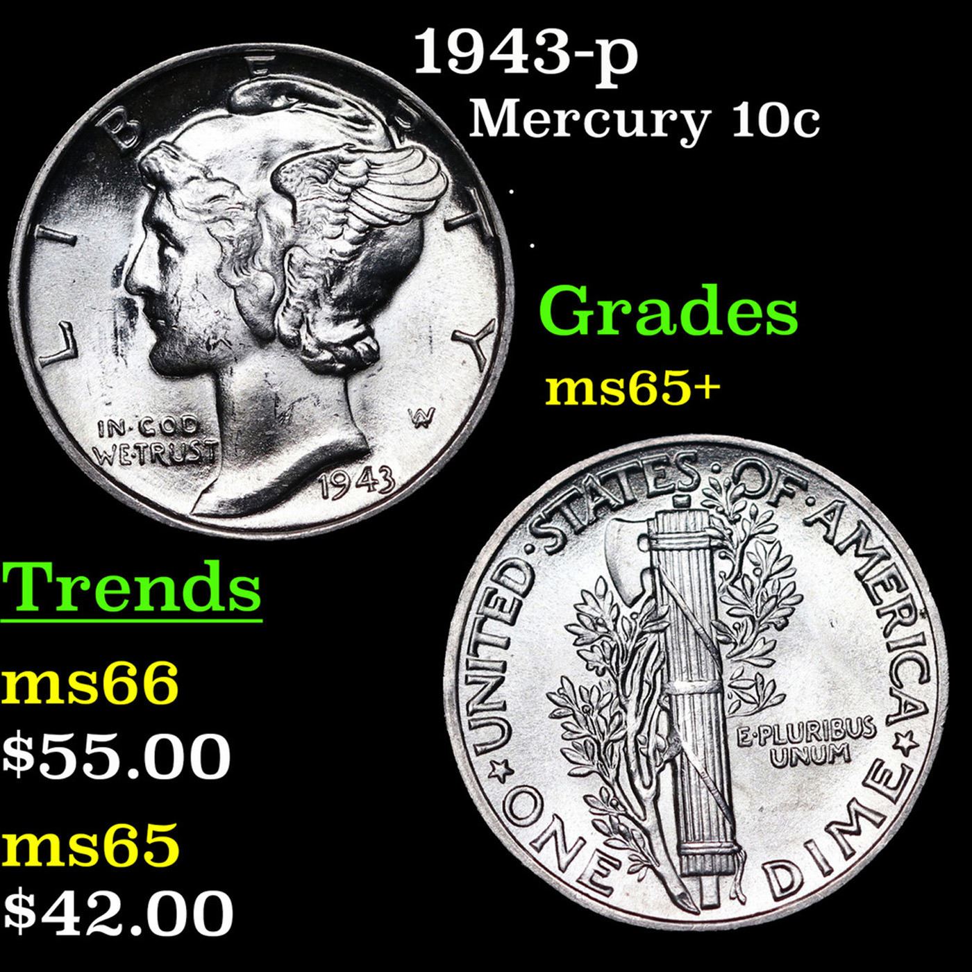 1943-p Mercury Dime 10c Grades GEM+ Unc.