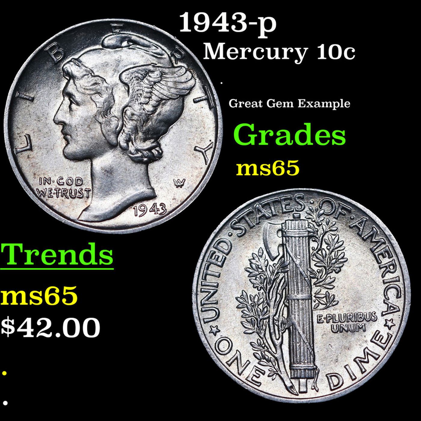 1943-p Mercury Dime 10c Grades GEM Unc.