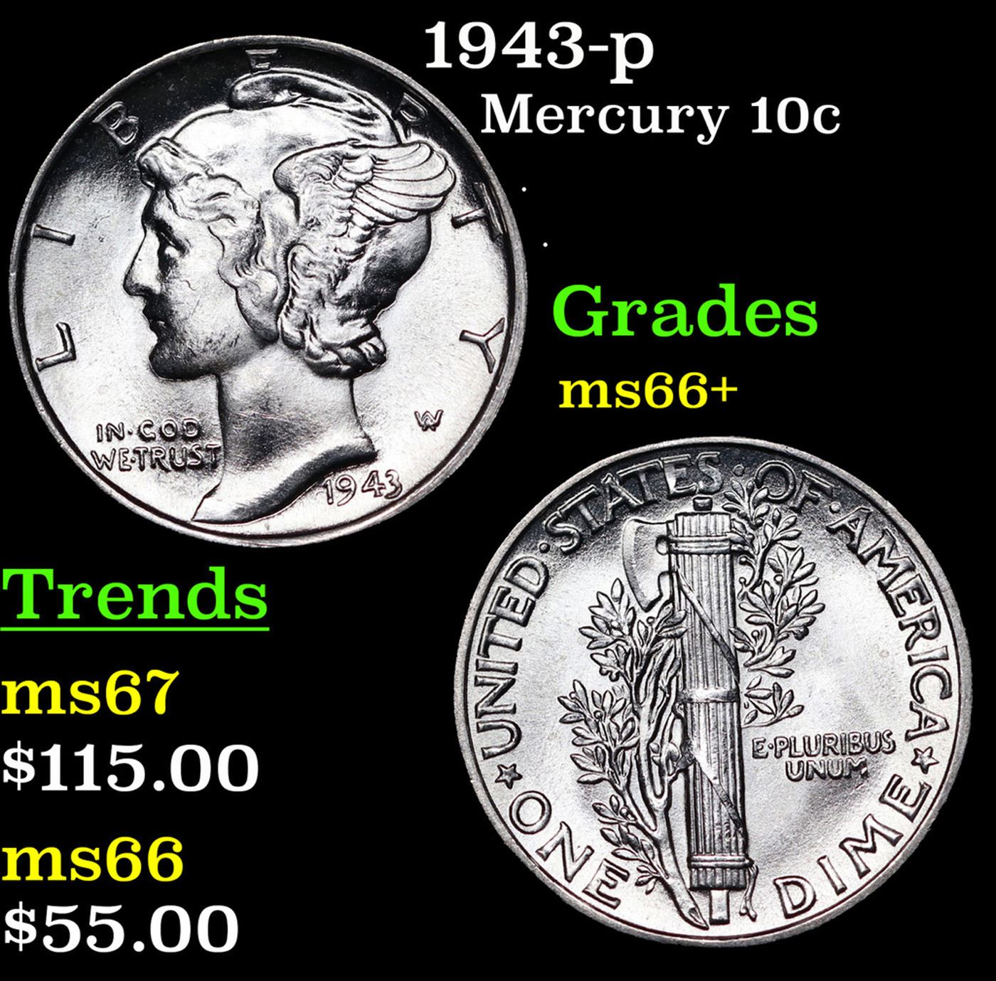 1943-p Mercury Dime 10c Grades GEM++ Unc.