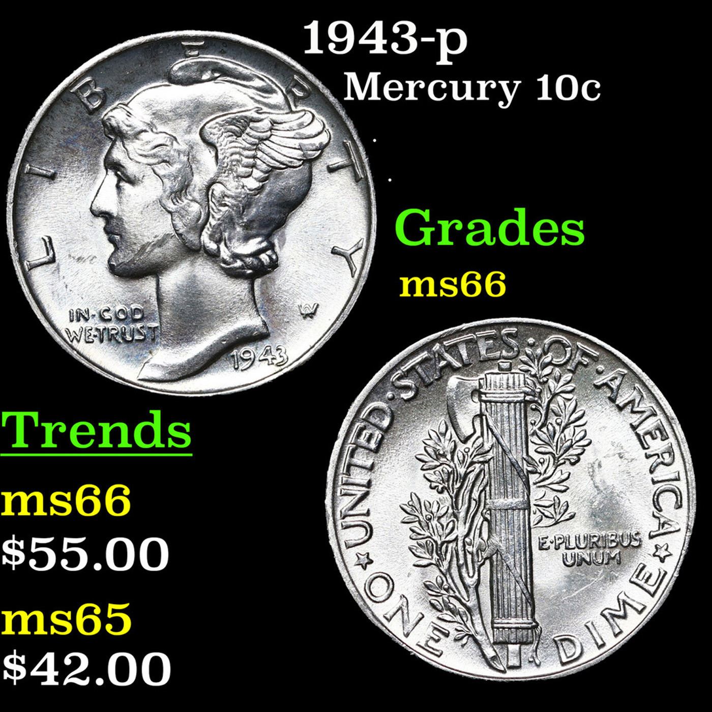 1943-p Mercury Dime 10c Grades GEM+ Unc.