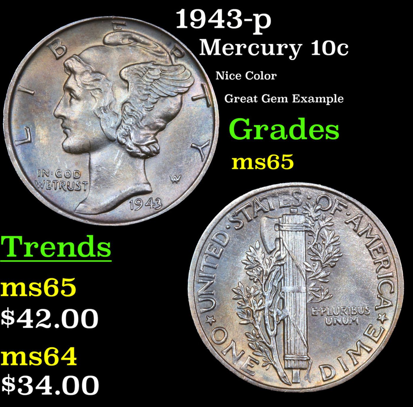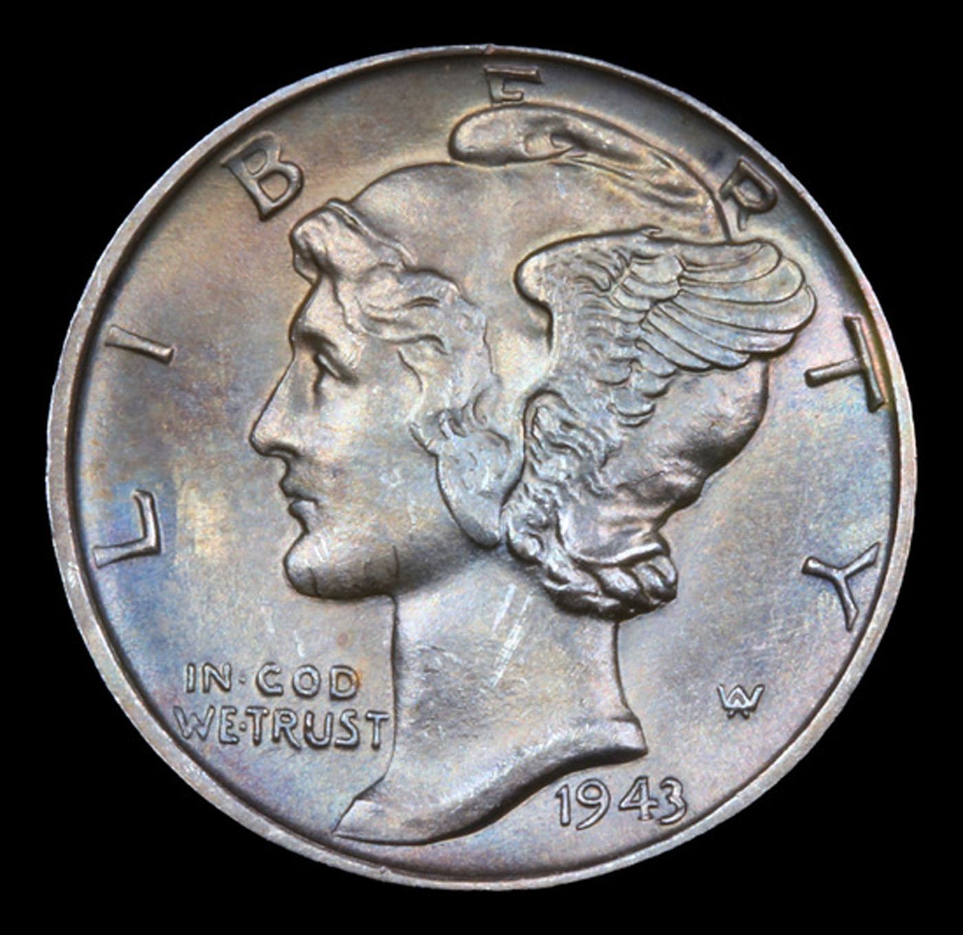 1943-p Mercury Dime 10c Grades GEM Unc.