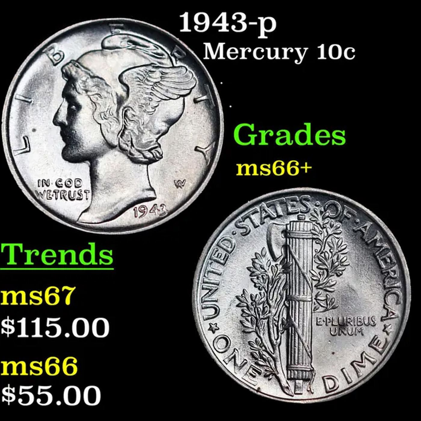 1943-p Mercury Dime 10c Grades GEM++ Unc.