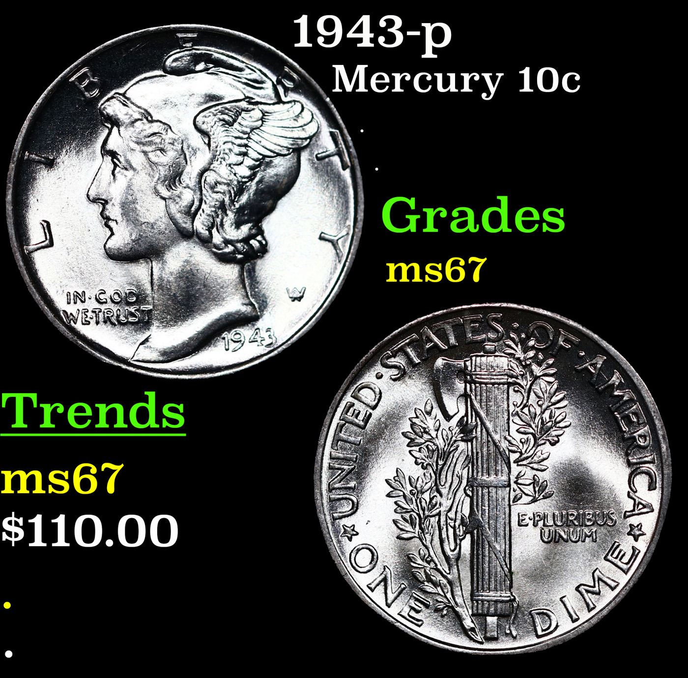 1943-p Mercury Dime 10c Grades GEM++ Unc.