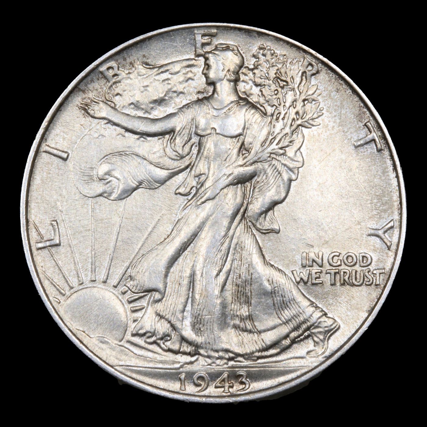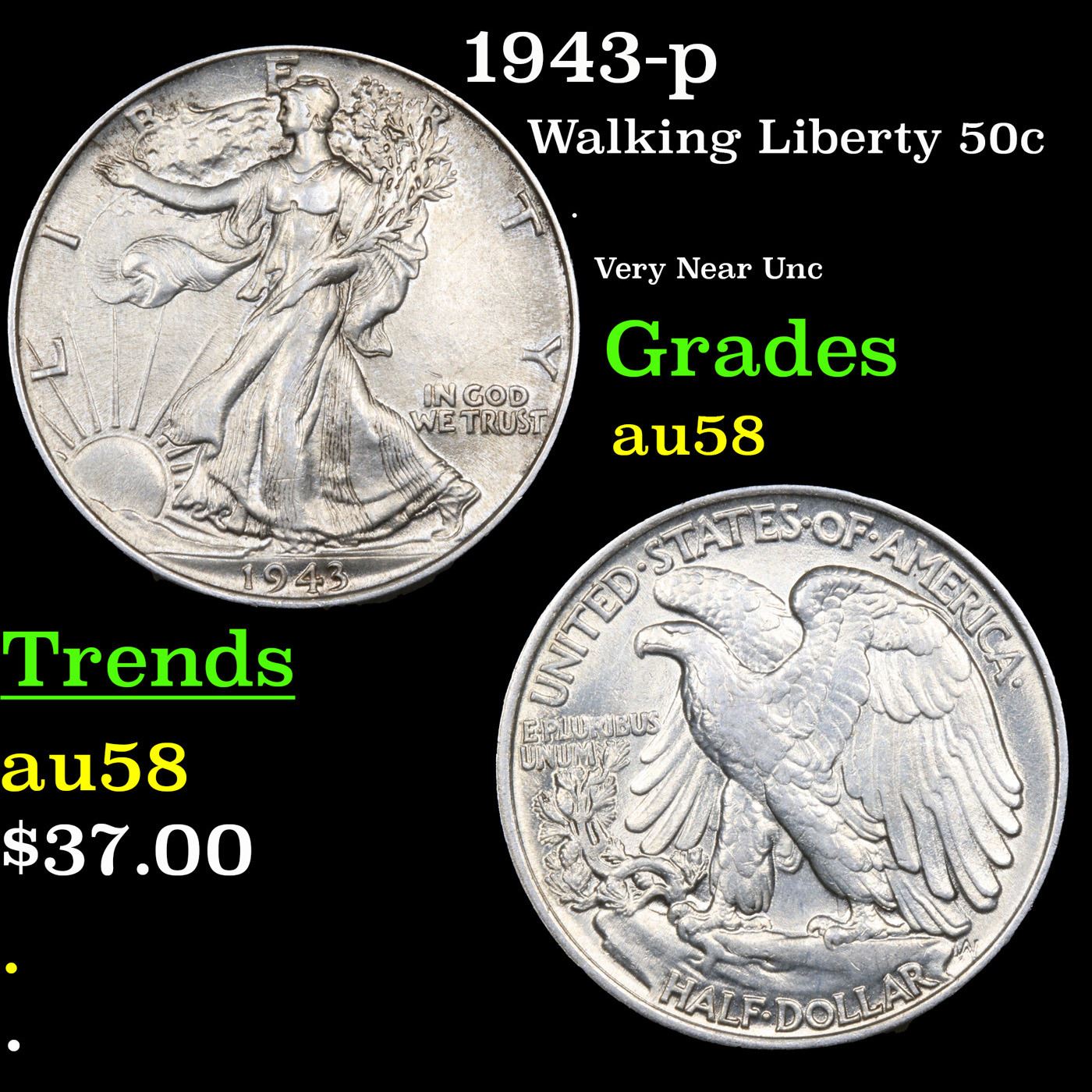 1943-p Walking Liberty Half Dollar 50c Grades Choice AU/BU Slider.