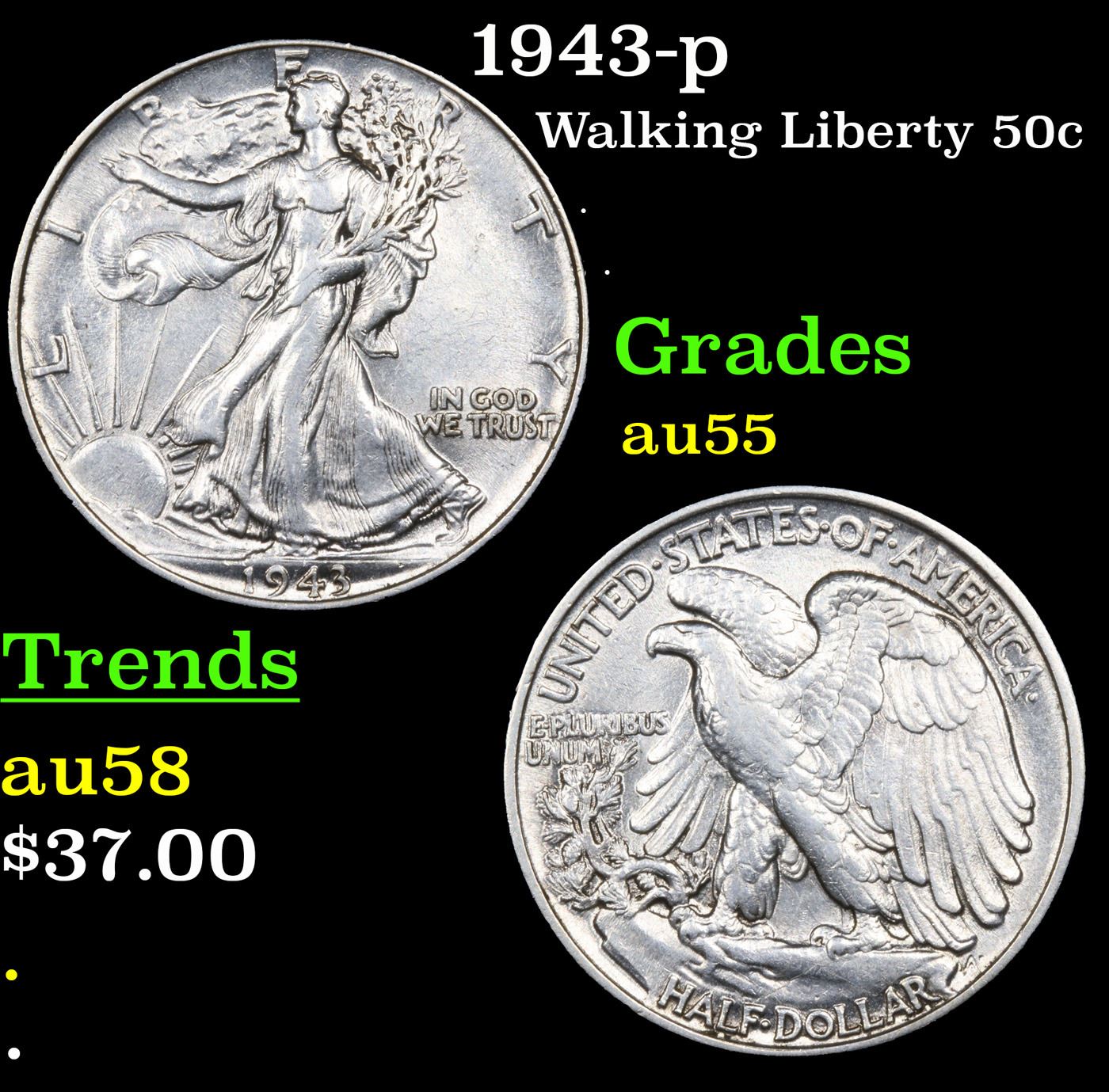 1943-p Walking Liberty Half Dollar 50c Grades Choice AU.