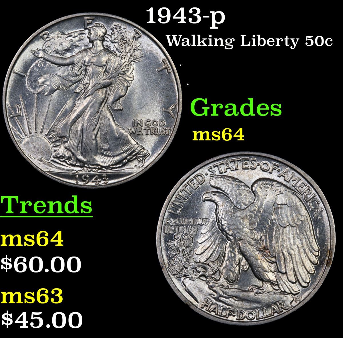 1943-p Walking Liberty Half Dollar 50c Grades Choice Unc.