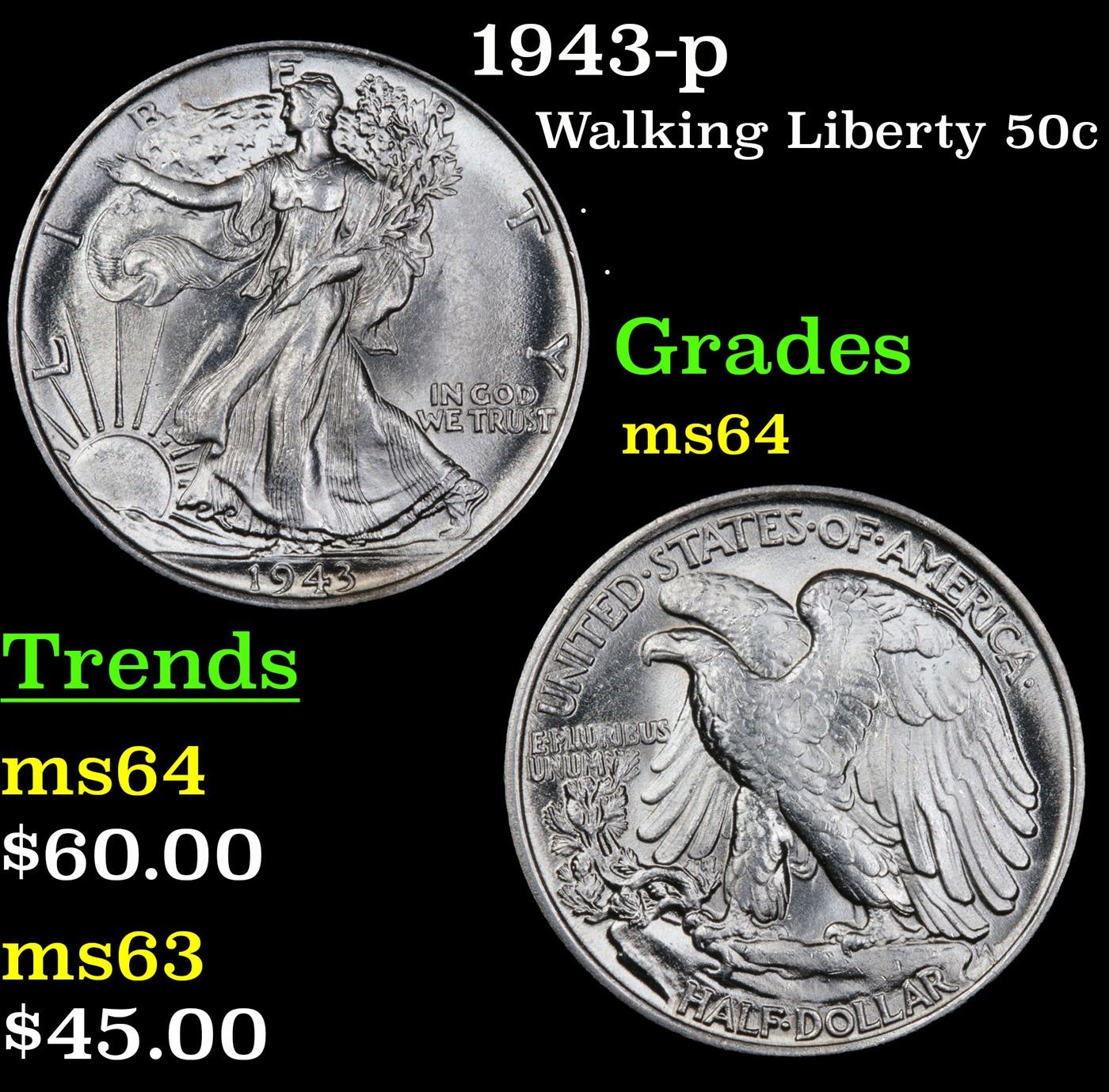 1943-p Walking Liberty Half Dollar 50c Grades Choice Unc.