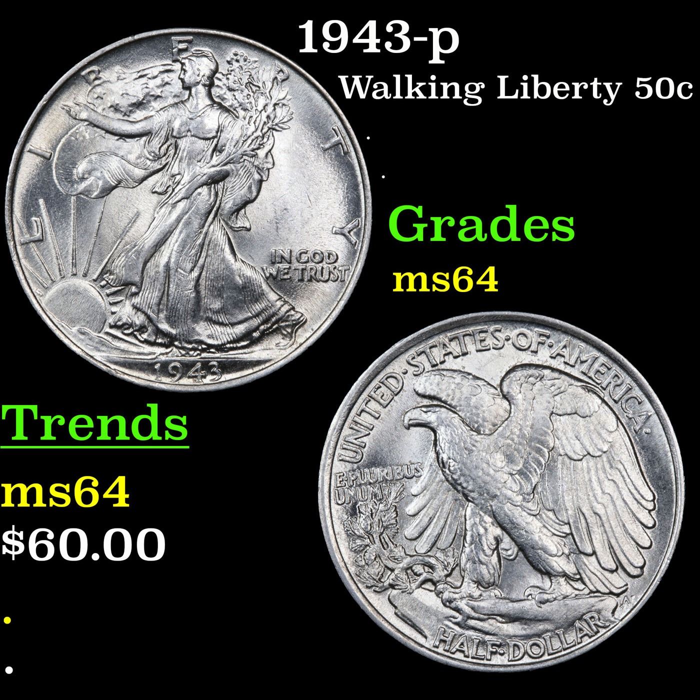 1943-p Walking Liberty Half Dollar 50c Grades Choice Unc.