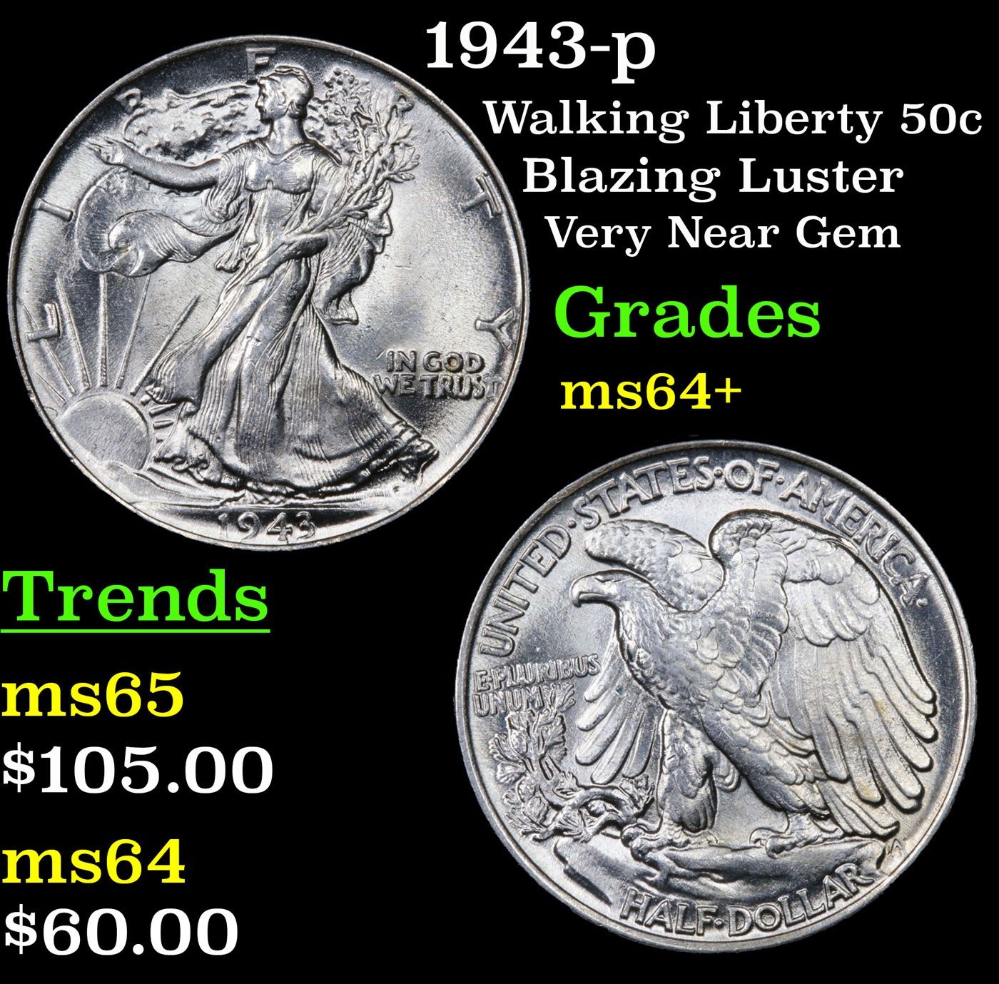 1943-p Walking Liberty Half Dollar 50c Grades Choice+ Unc.