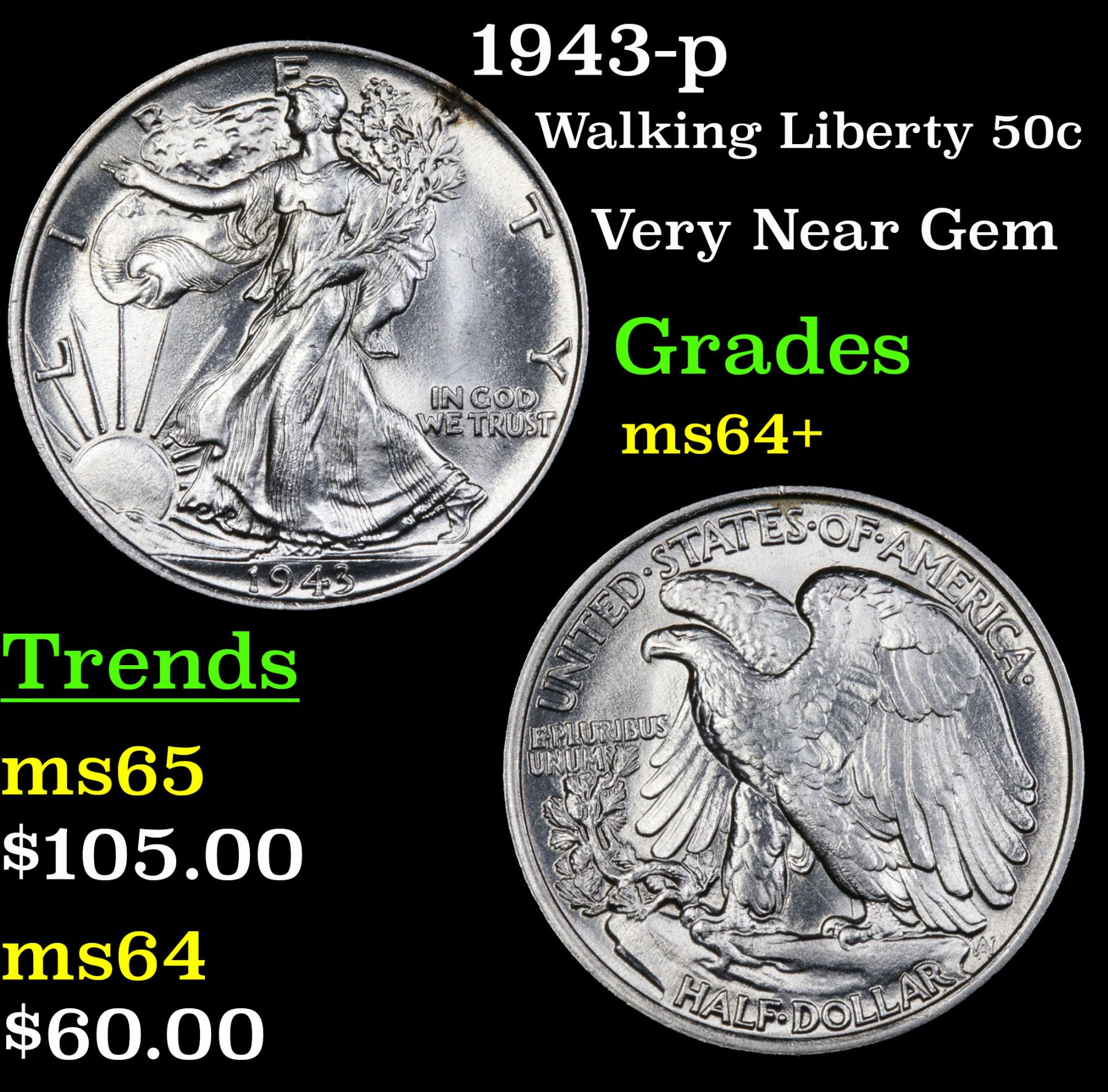 1943-p Walking Liberty Half Dollar 50c Grades Choice+ Unc.