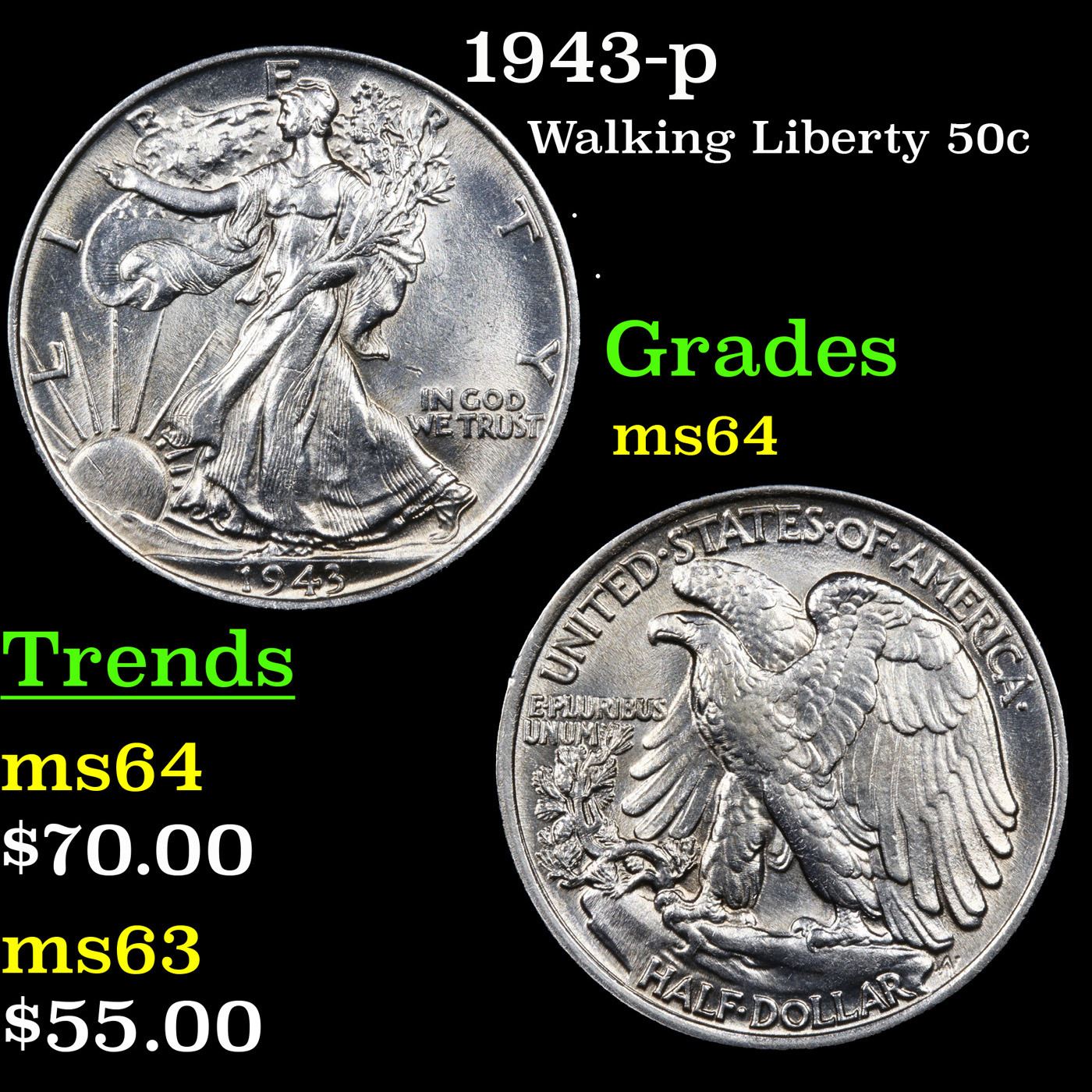 1943-p Walking Liberty Half Dollar 50c Grades Choice Unc.