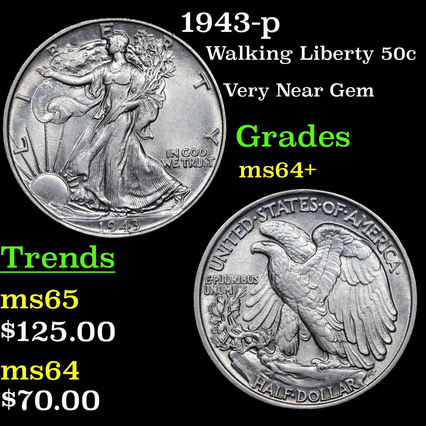 1943-p Walking Liberty 50c Grades Choice+ Unc