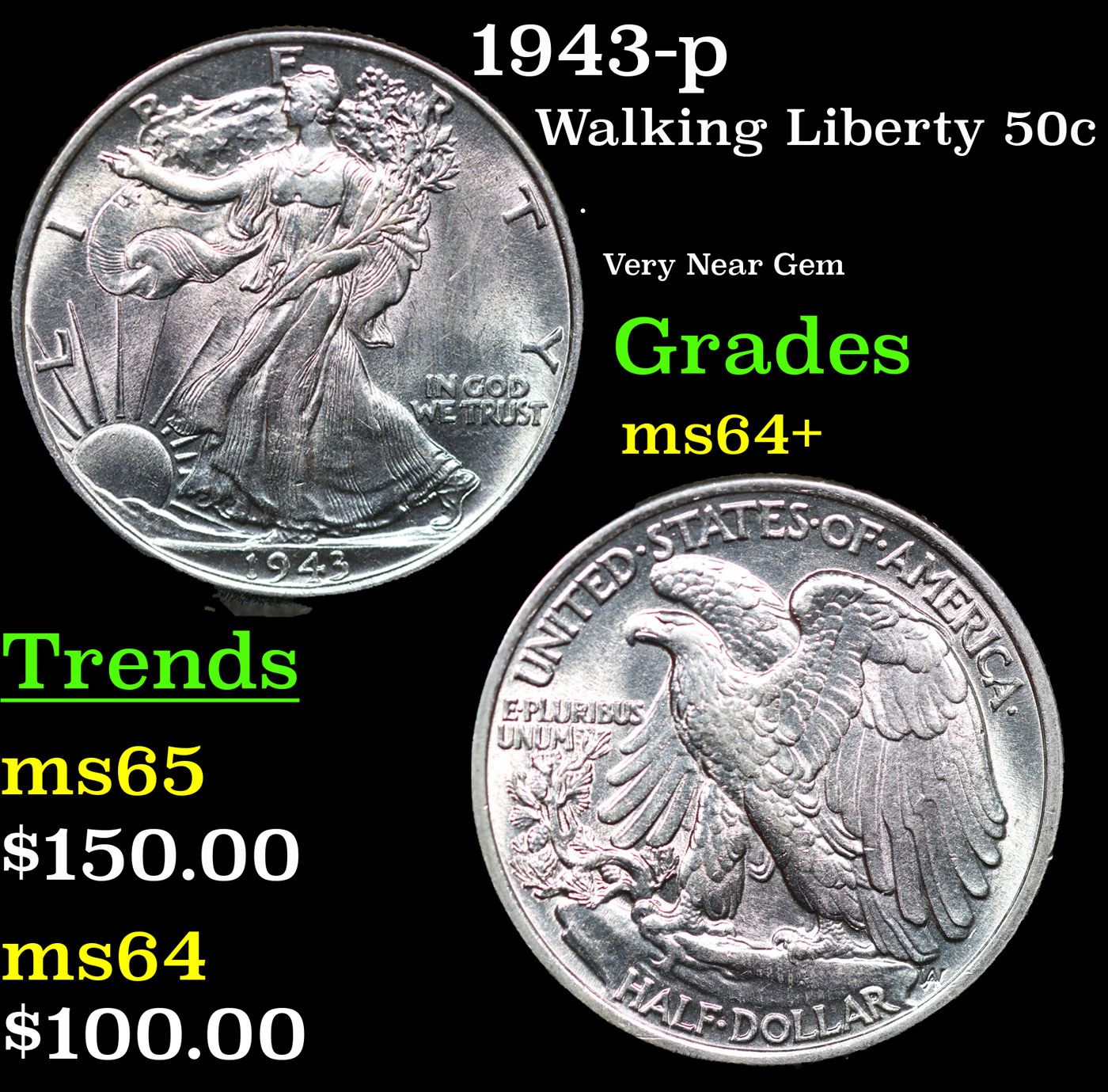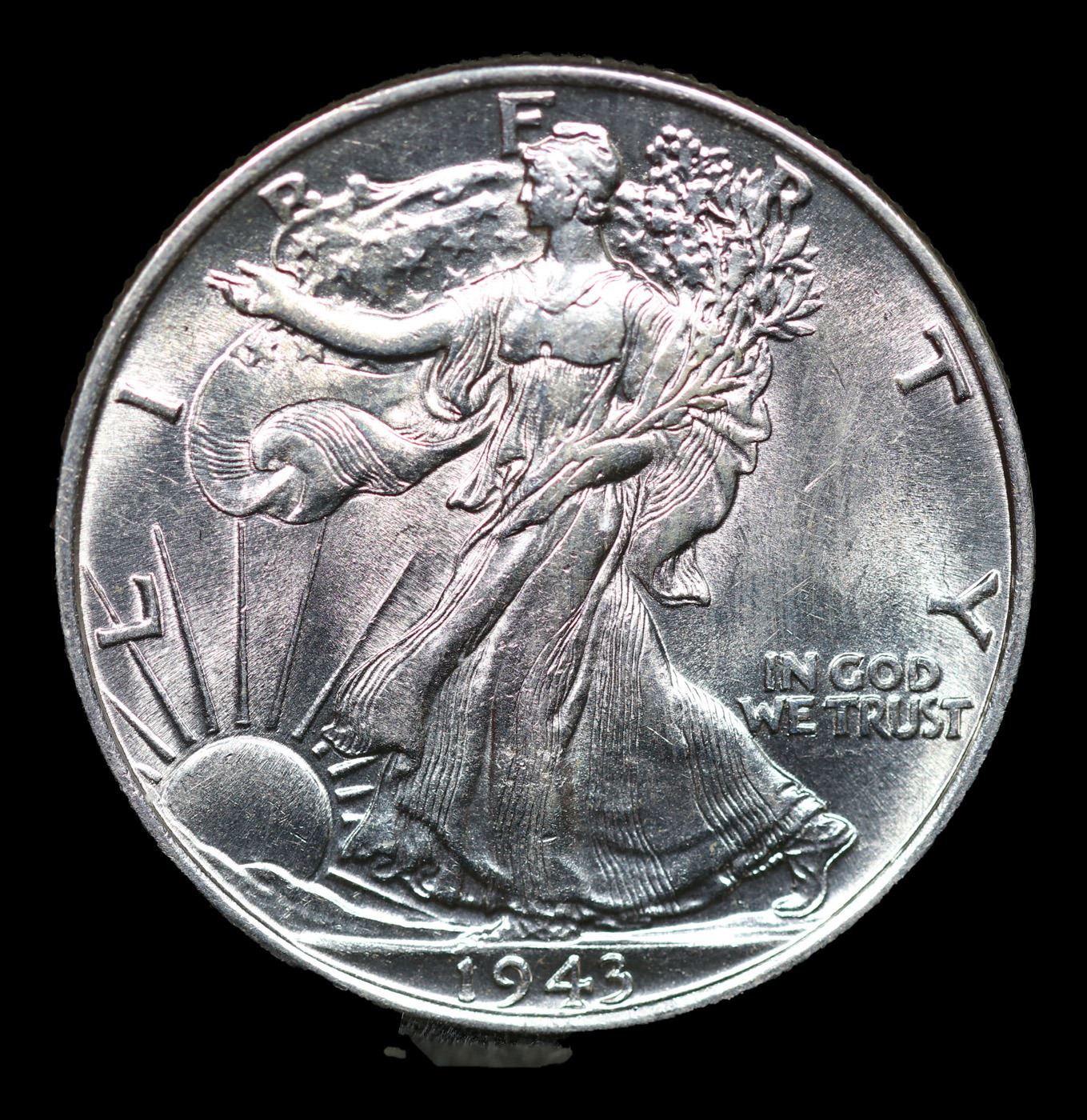 1943-p Walking Liberty Half Dollar 50c Grades Choice+ Unc.