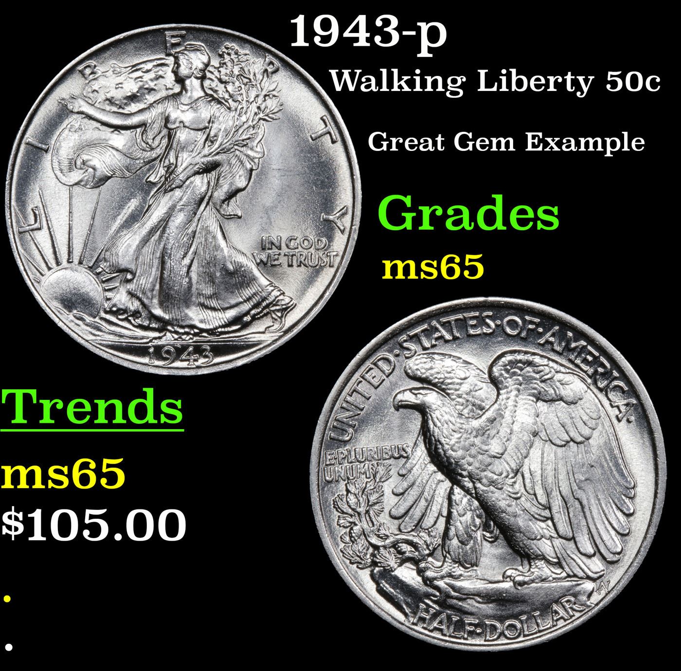 1943-p Walking Liberty Half Dollar 50c Grades GEM Unc.