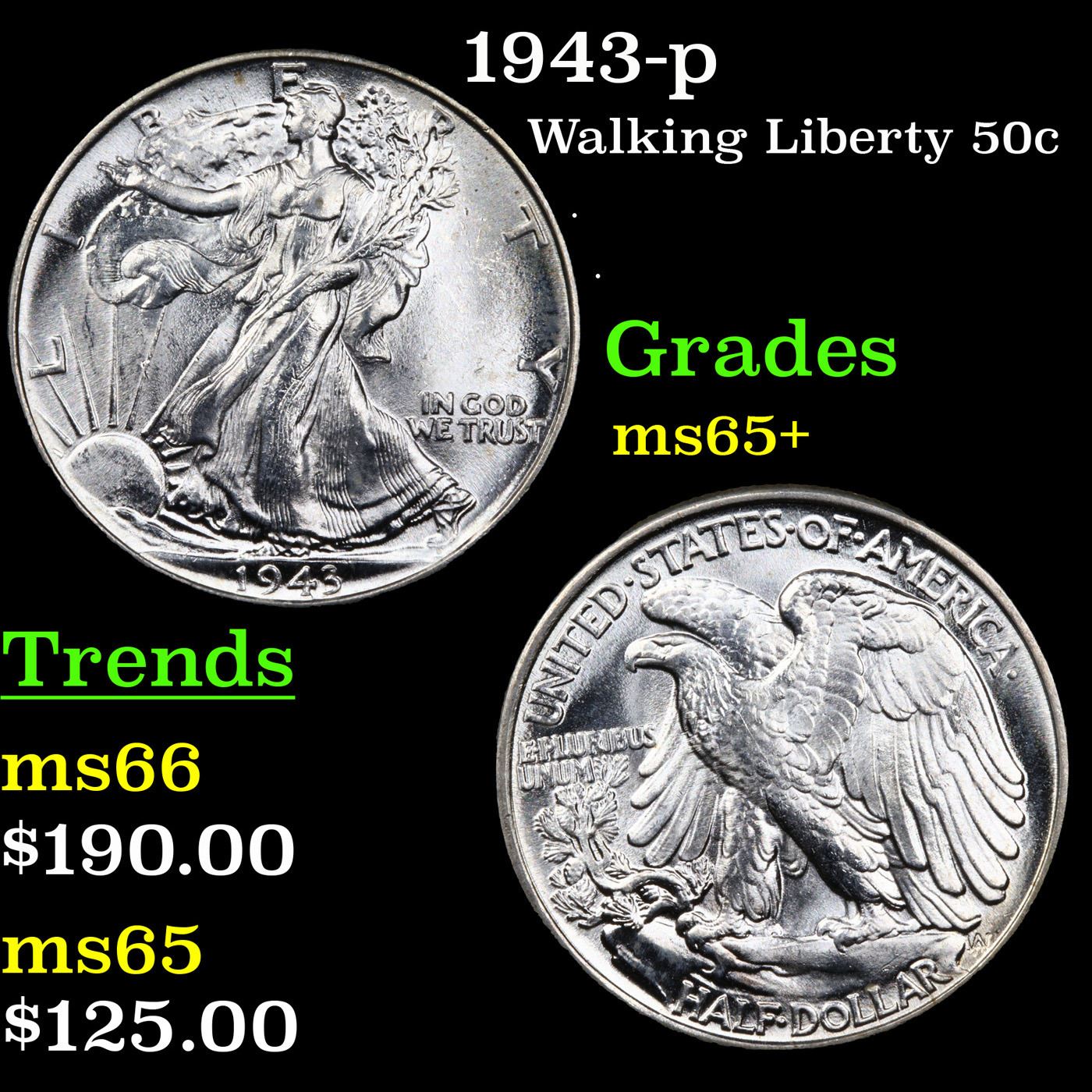 1943-p Walking Liberty Half Dollar 50c Grades GEM+ Unc.