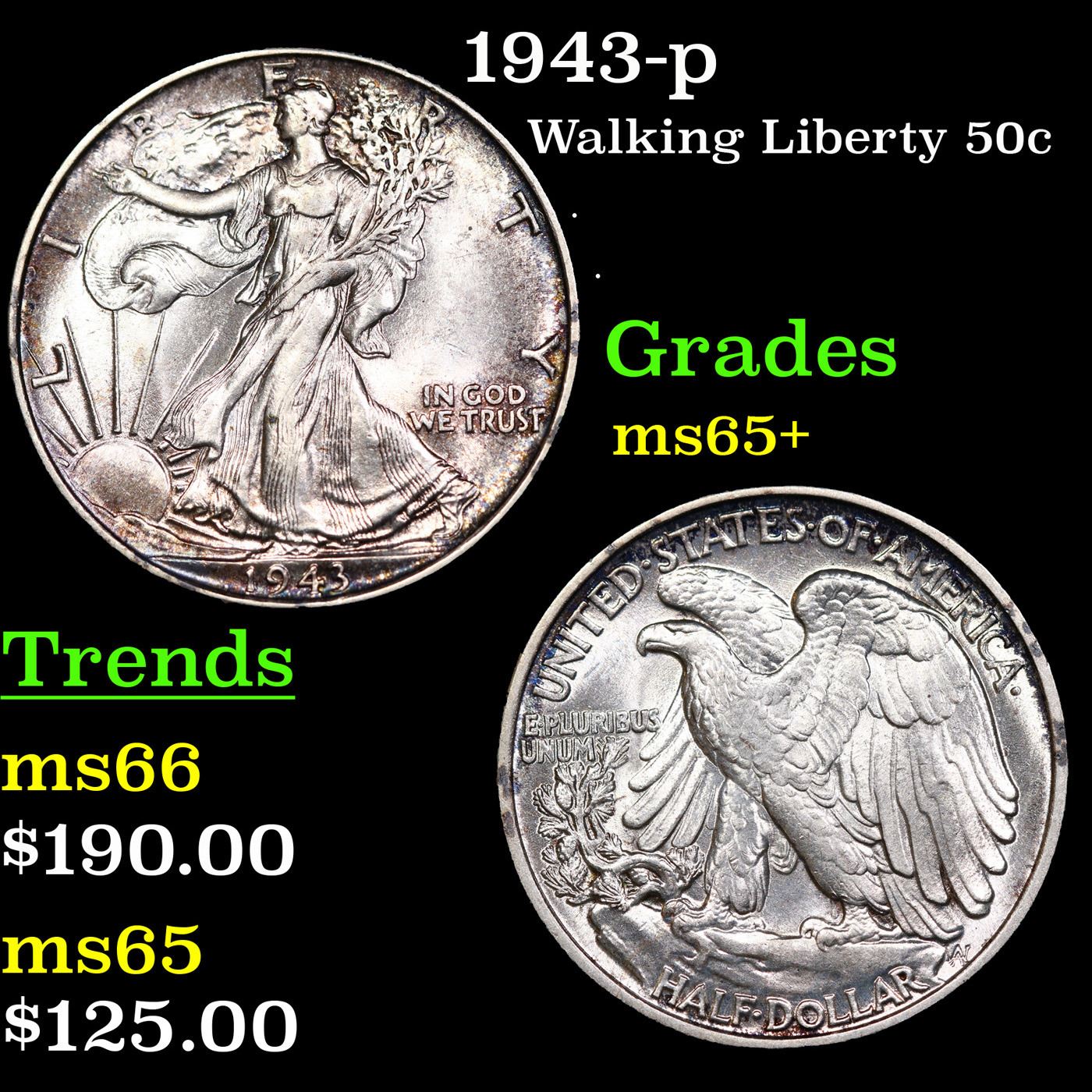 1943-p Walking Liberty Half Dollar 50c Grades GEM+ Unc.