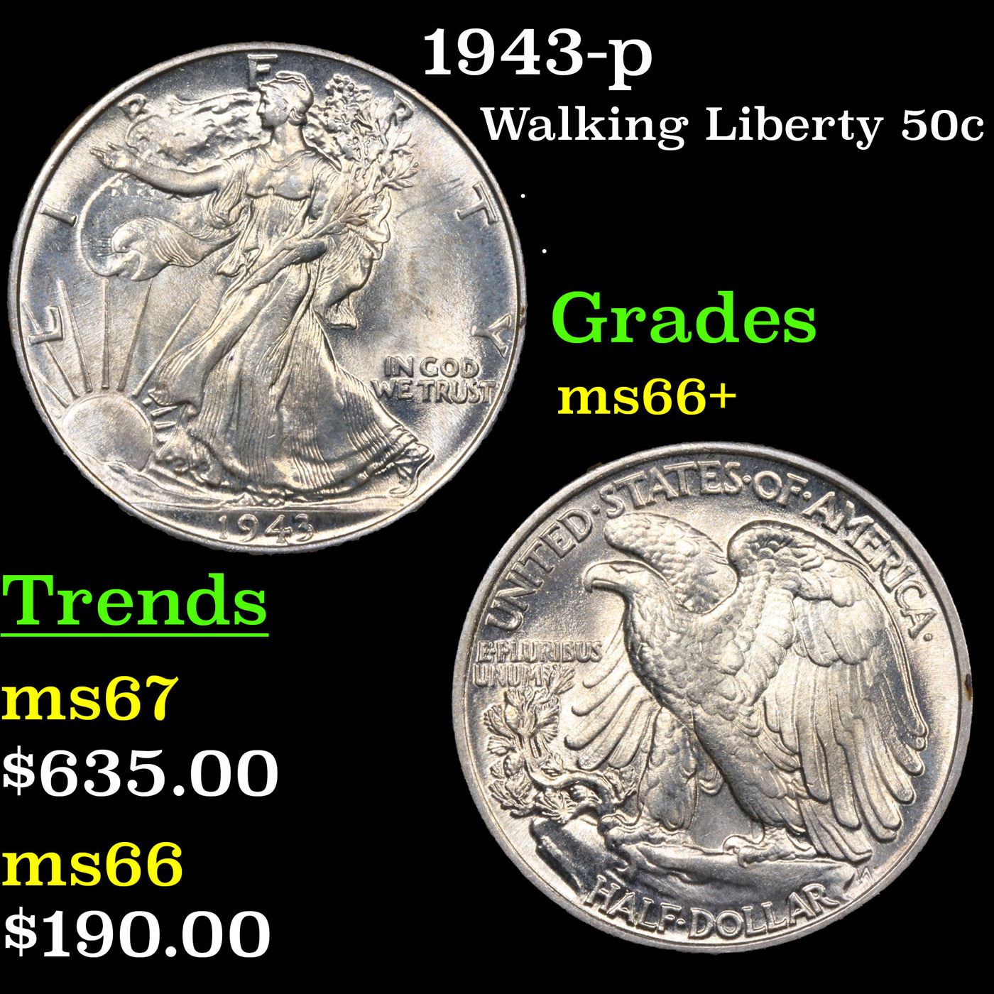 1943-p Walking Liberty Half Dollar 50c Grades GEM++ Unc.
