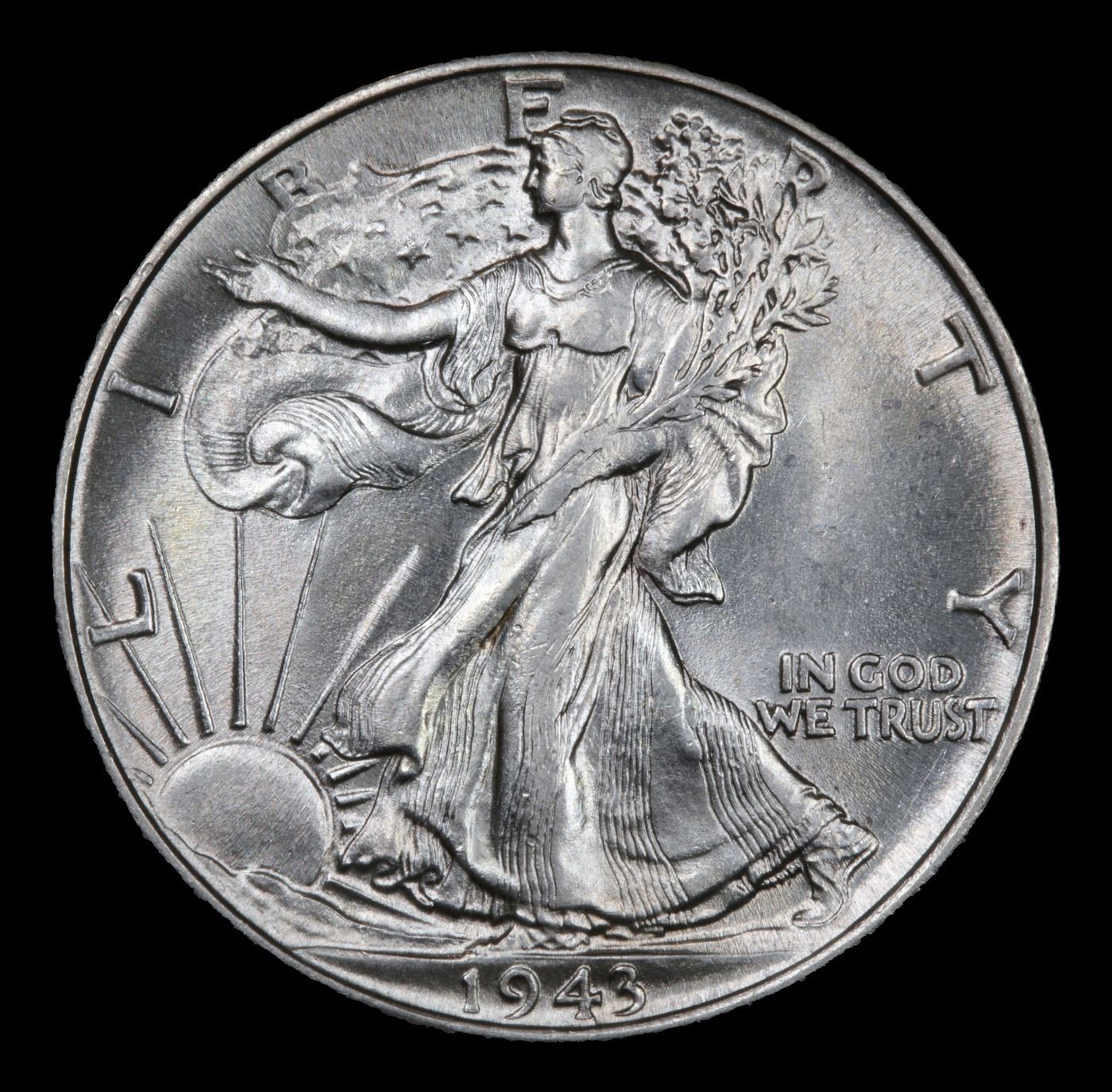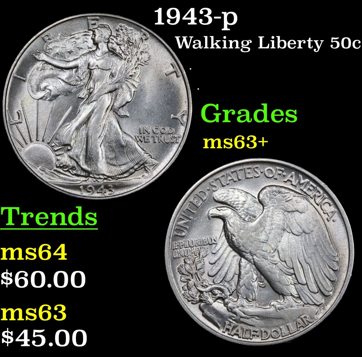 1943-p Walking Liberty Half Dollar 50c Grades Select+ Unc.