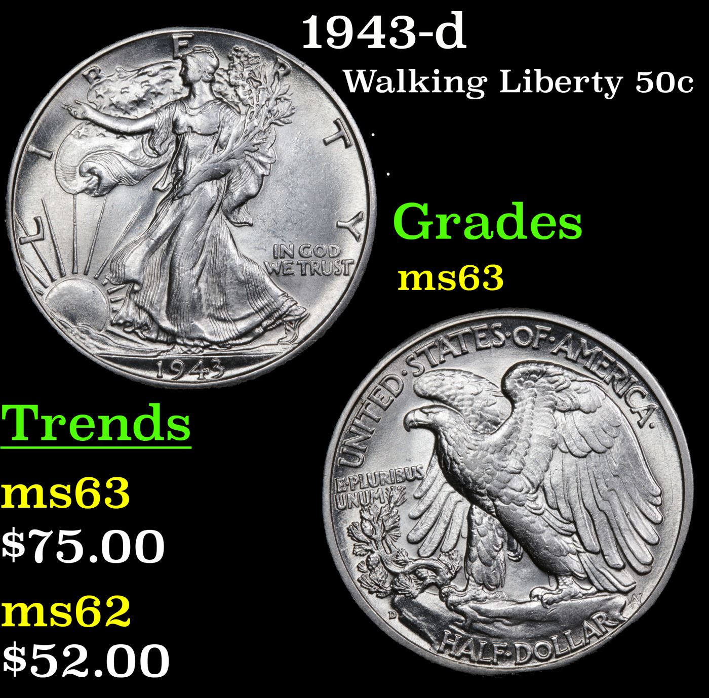 1943-p Walking Liberty Half Dollar 50c Grades Select Unc.