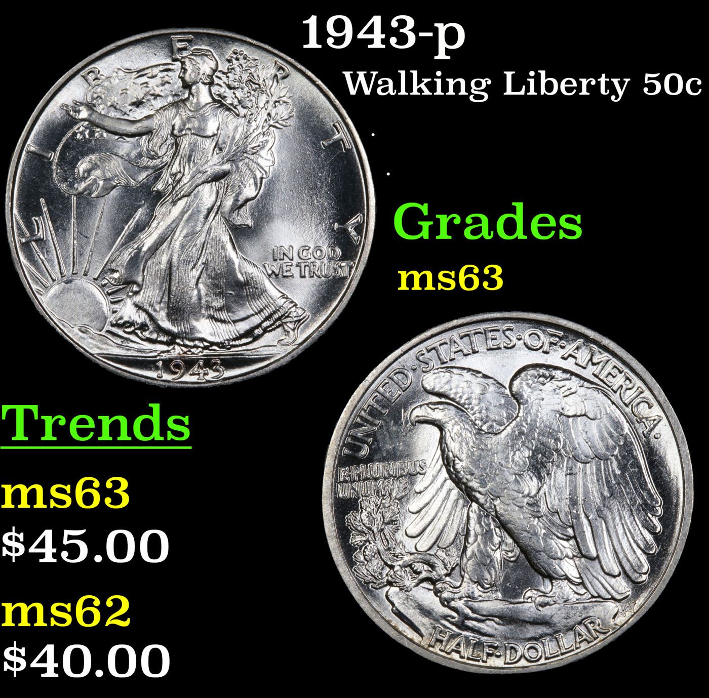 1943-p Walking Liberty Half Dollar 50c Grades Select Unc.