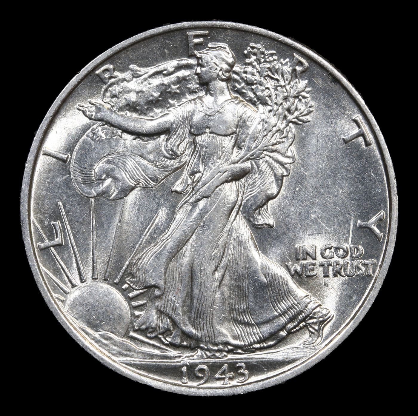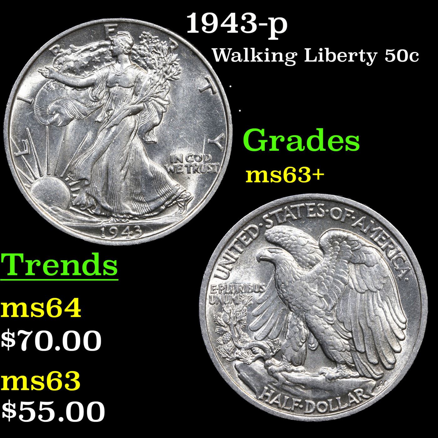 1943-p Walking Liberty Half Dollar 50c Grades Select+ Unc.