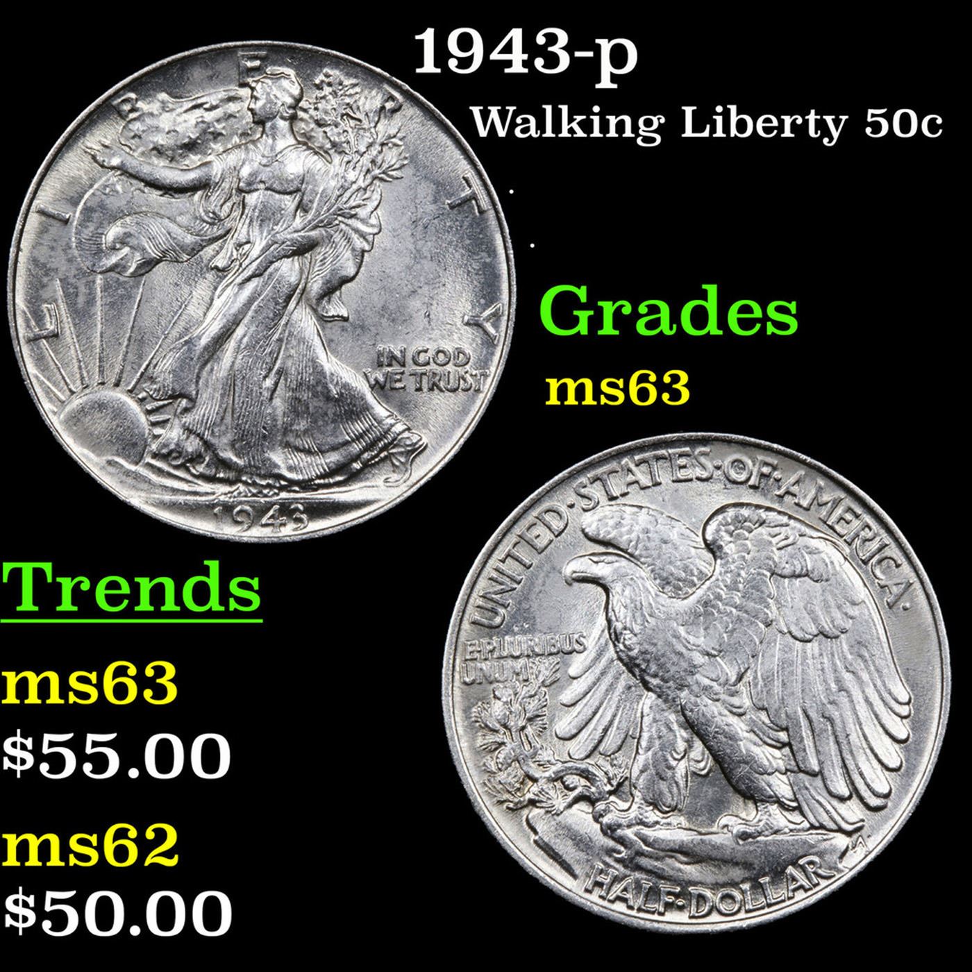 1943-p Walking Liberty Half Dollar 50c Grades Select Unc.