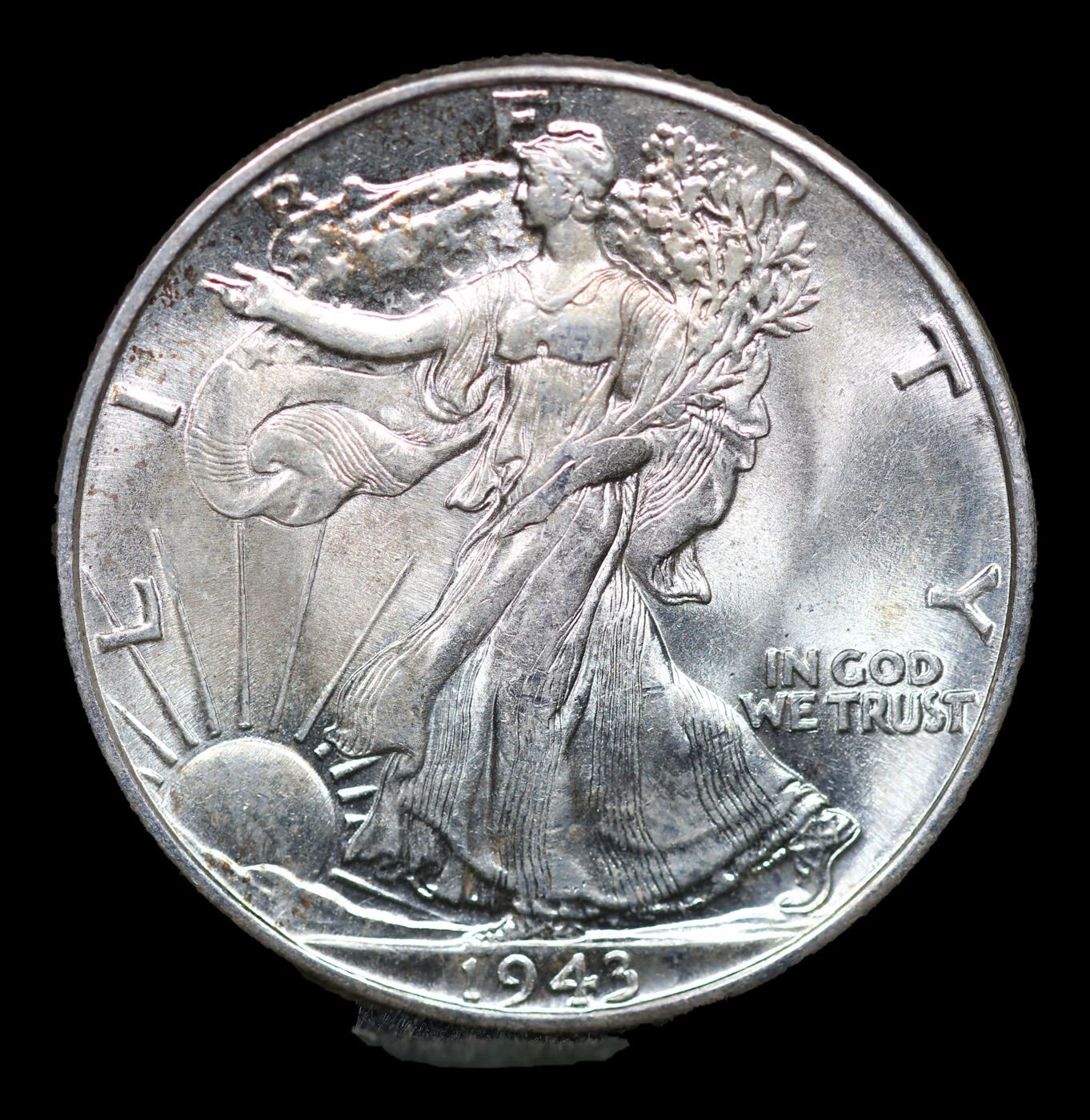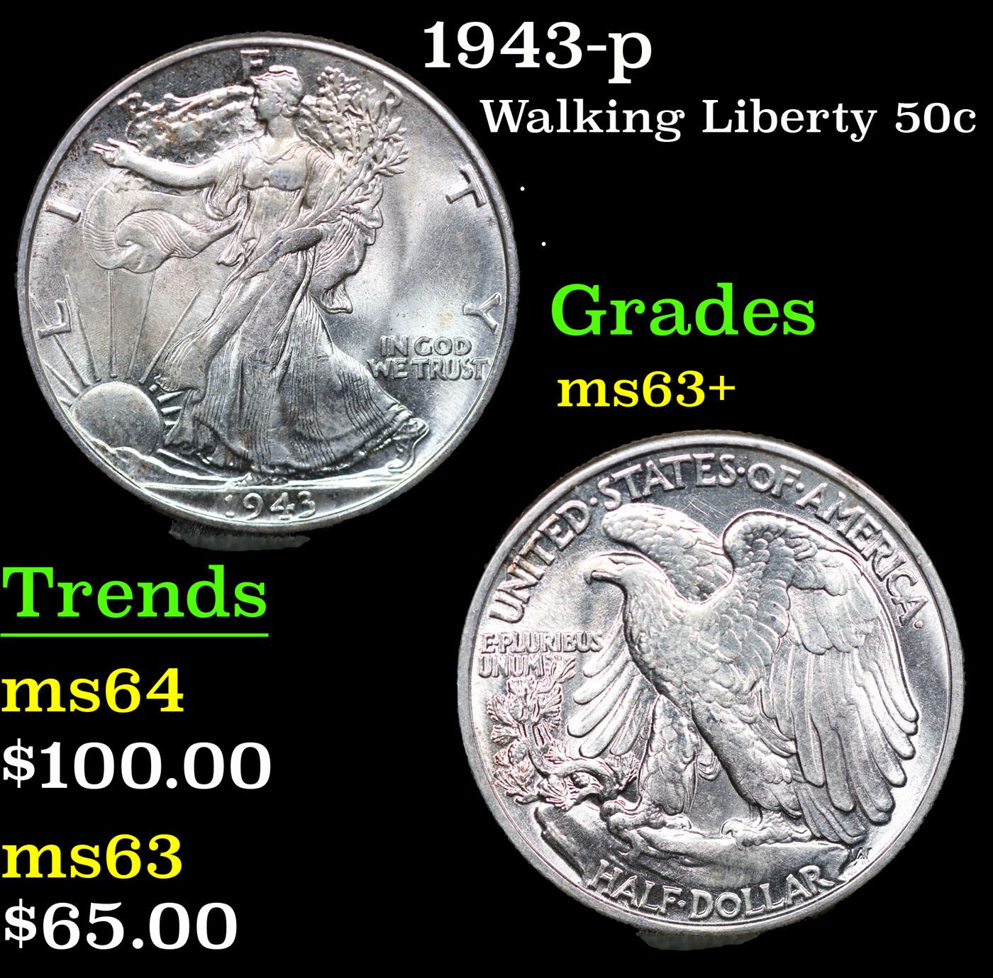 1943-p Walking Liberty Half Dollar 50c Grades Select+ Unc.
