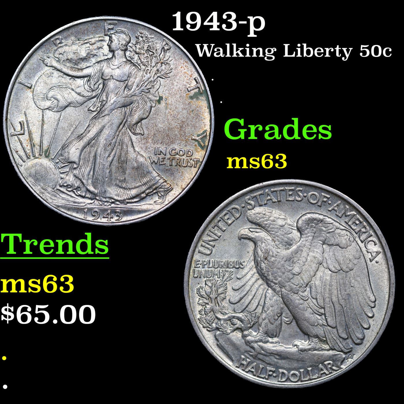 1943-p Walking Liberty Half Dollar 50c Grades Select Unc.