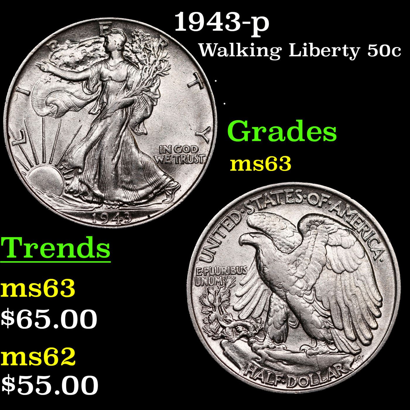 1943-p Walking Liberty Half Dollar 50c Grades Select Unc.