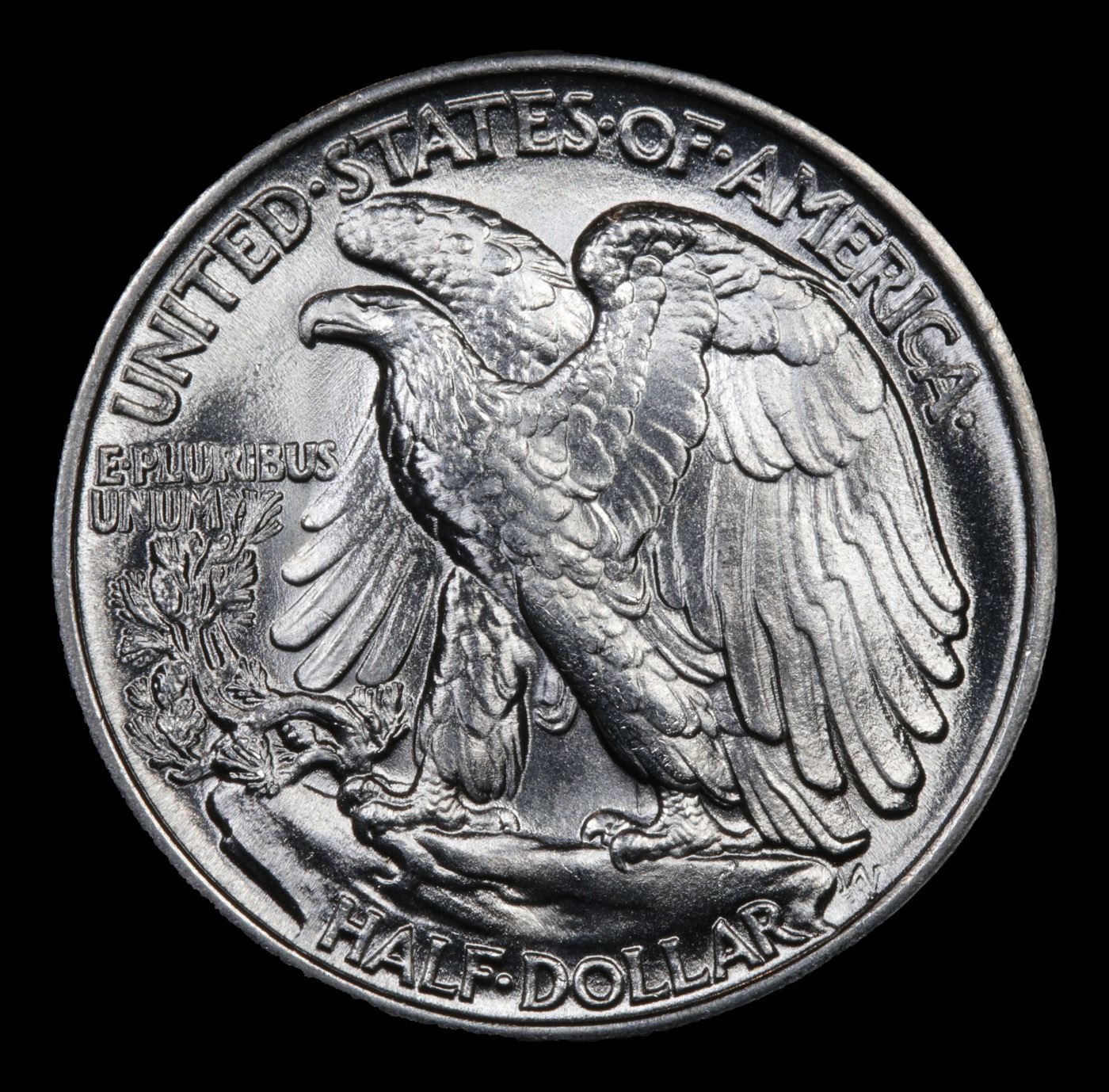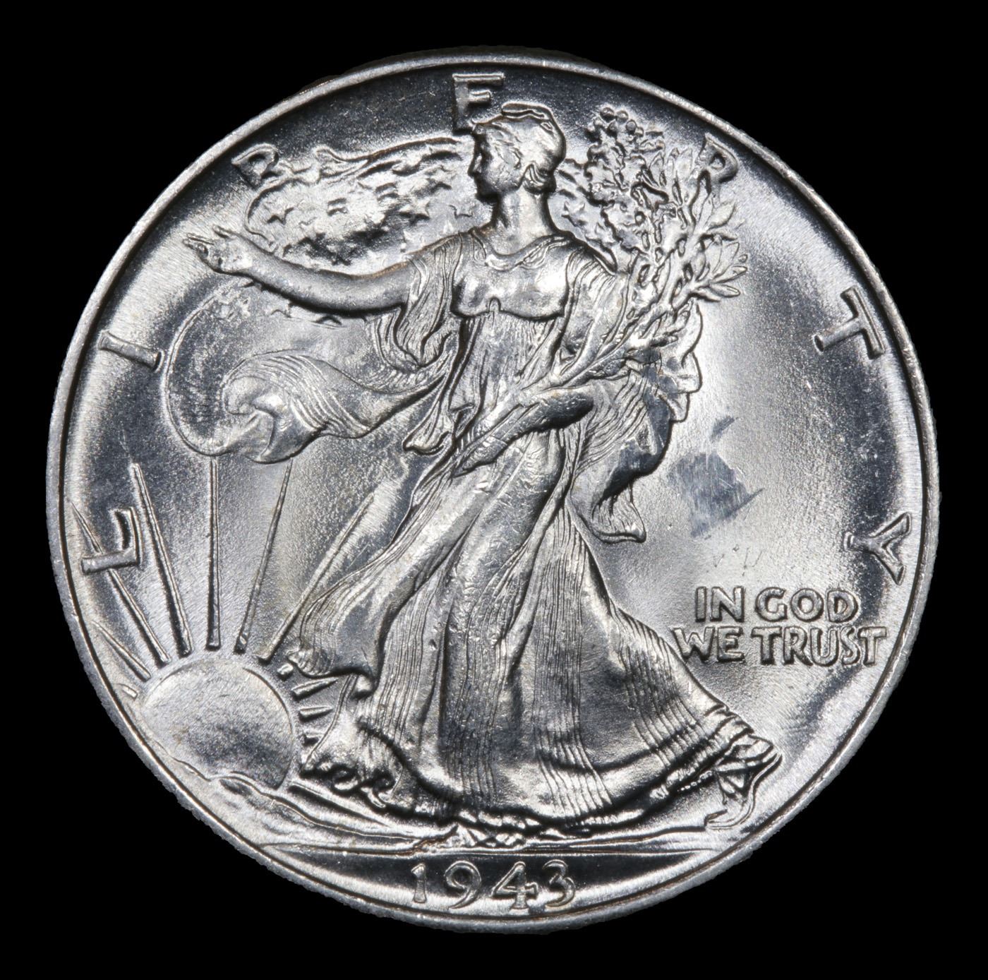 1943-p Walking Liberty Half Dollar 50c Grades Unc Details.         The coin is actually an ms64 with a coin counting machine mark on the right side.  It is likely if graded by one of the majors that they would ignore this issue and grade it as if it was not present, but I feel more comfortable calling it Unc Details.