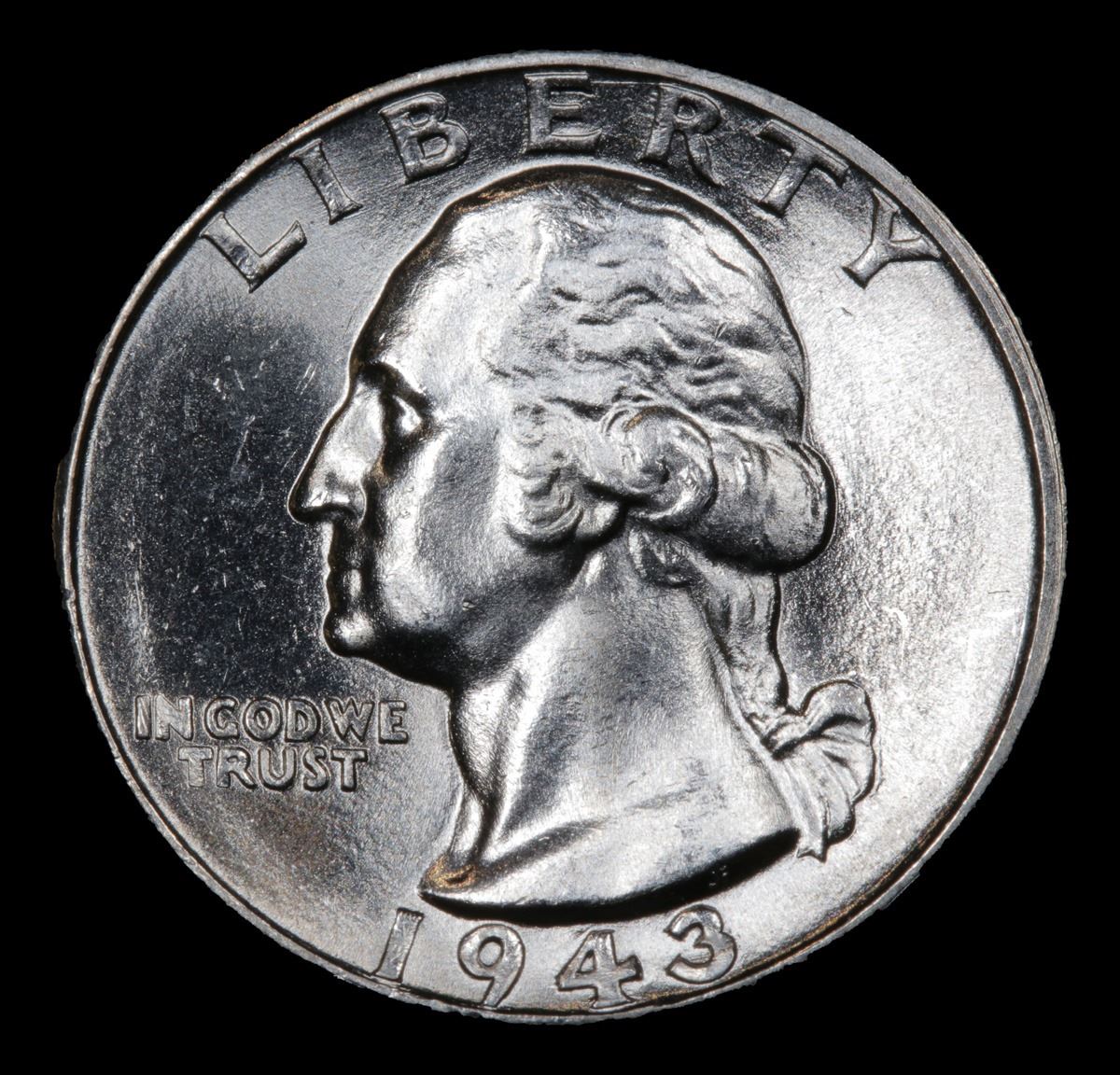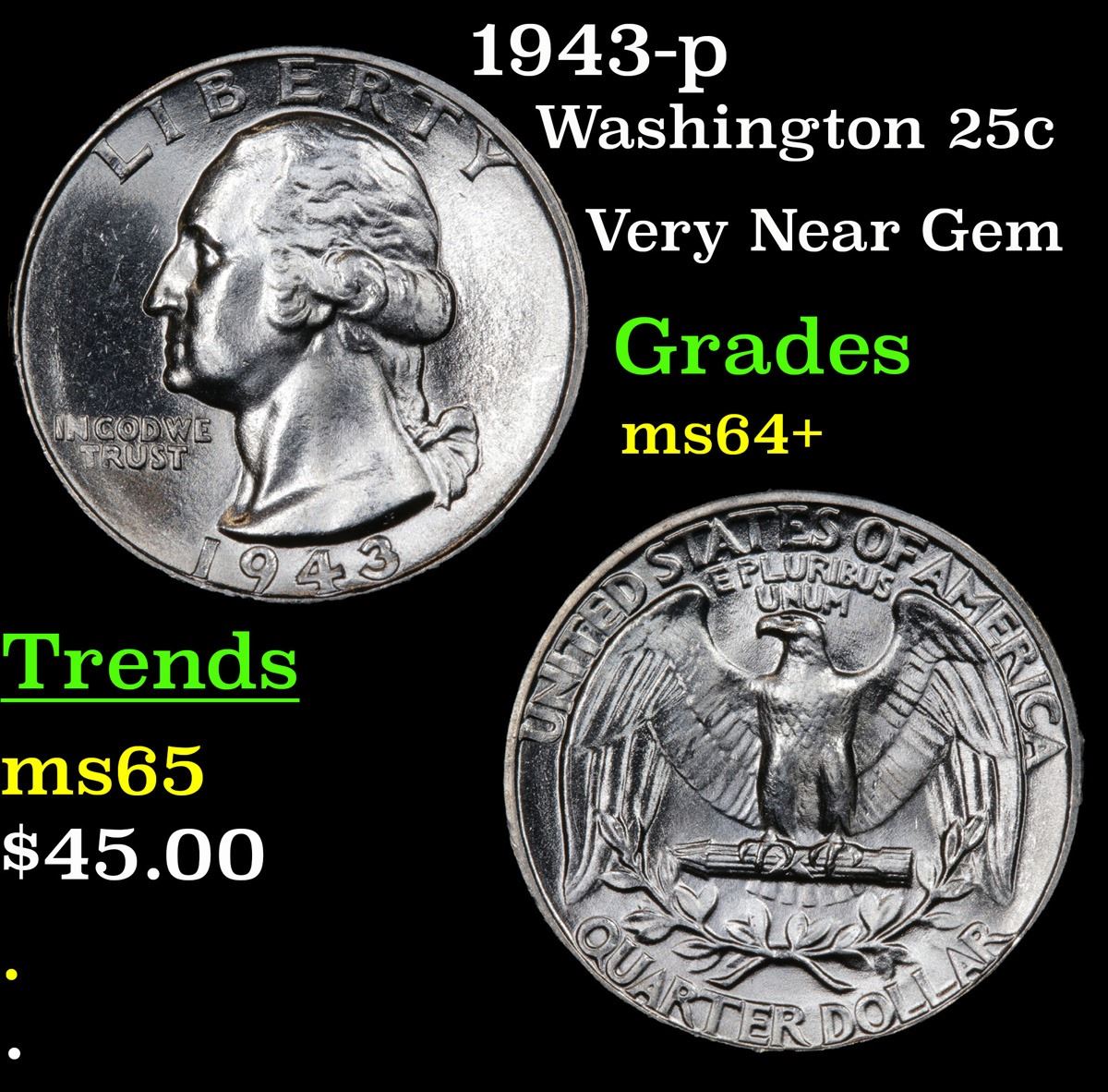 1943-p Washington Quarter 25c Grades Choice+ Unc.