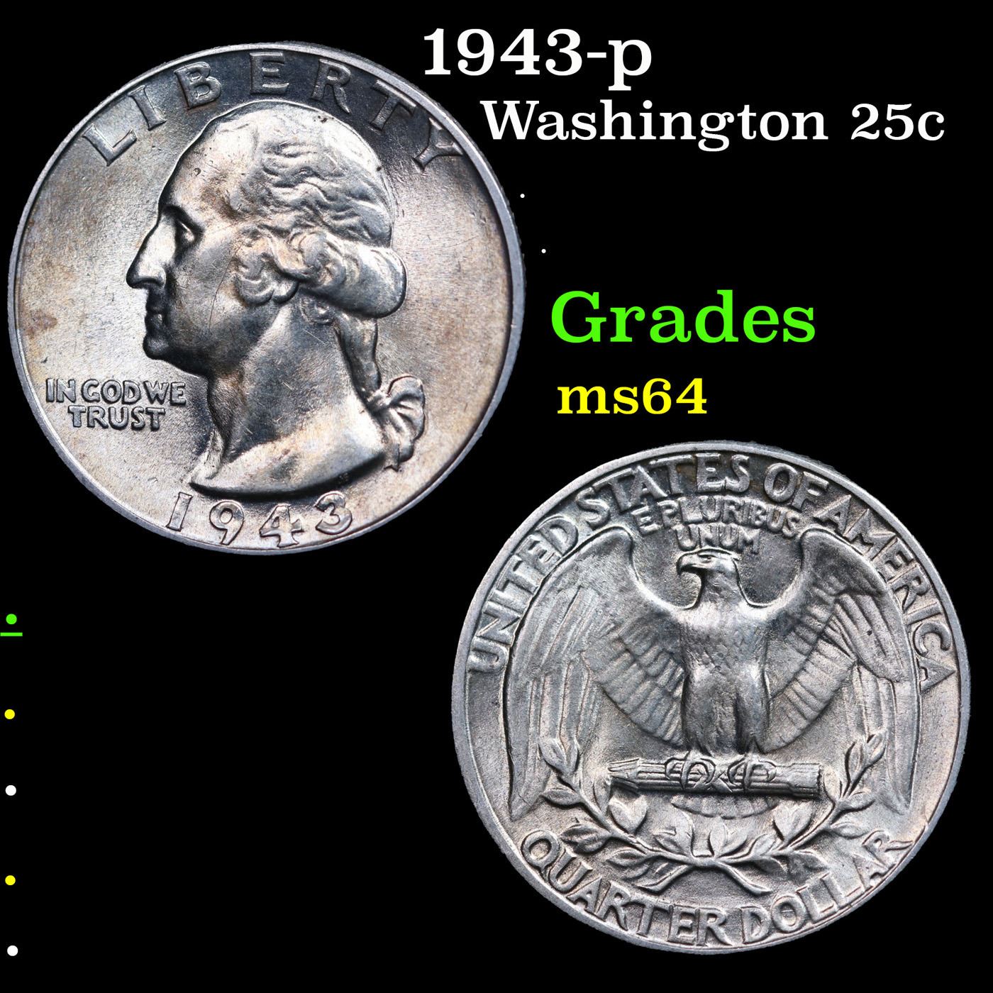 1943-p Washington Quarter 25c Grades Choice Unc.