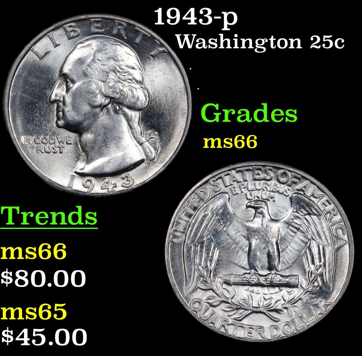 1943-p Washington Quarter 25c Grades GEM+ Unc.