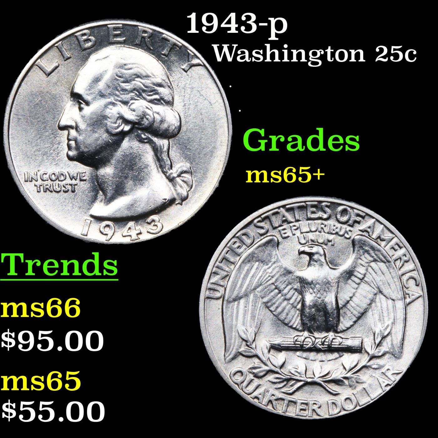 1943-p Washington Quarter 25c Grades GEM+ Unc.